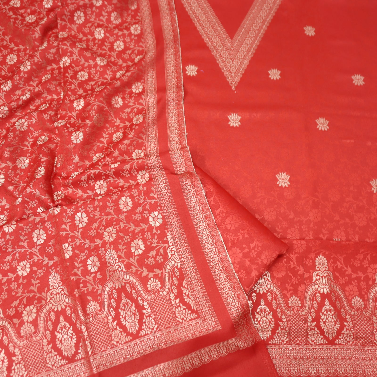 अनीत Tomato Red All Over Zari Weaved in Semi Pashmina Winter Suit Set