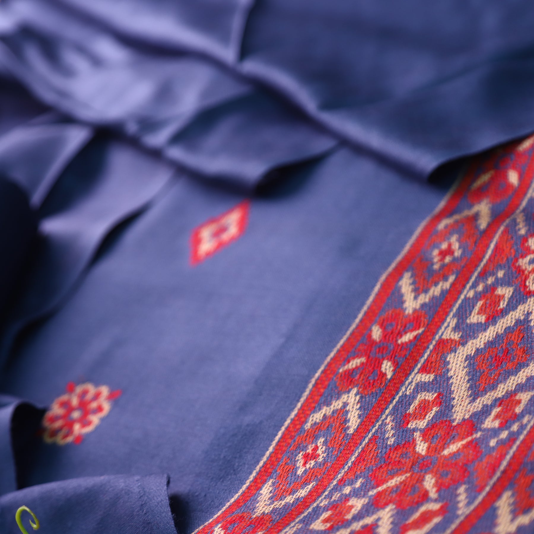 कृति Cerulean Blue Kullu Thread Weaved Hem Semi Pashmina Winter Suit Set