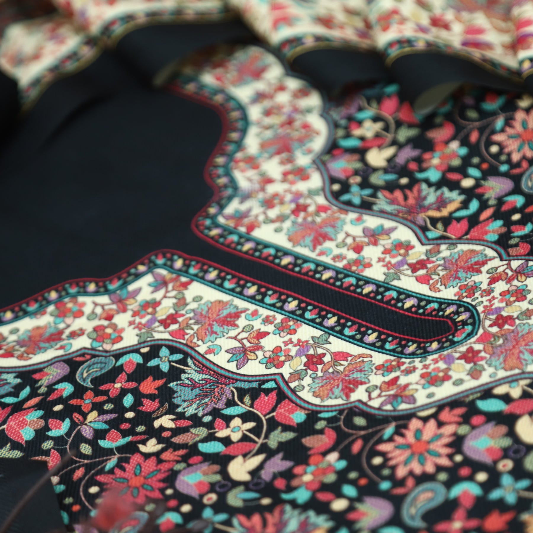 जयंती Ebony Black Digital All Over Kashmiri Printed Semi Pashmina Winter Suit Set