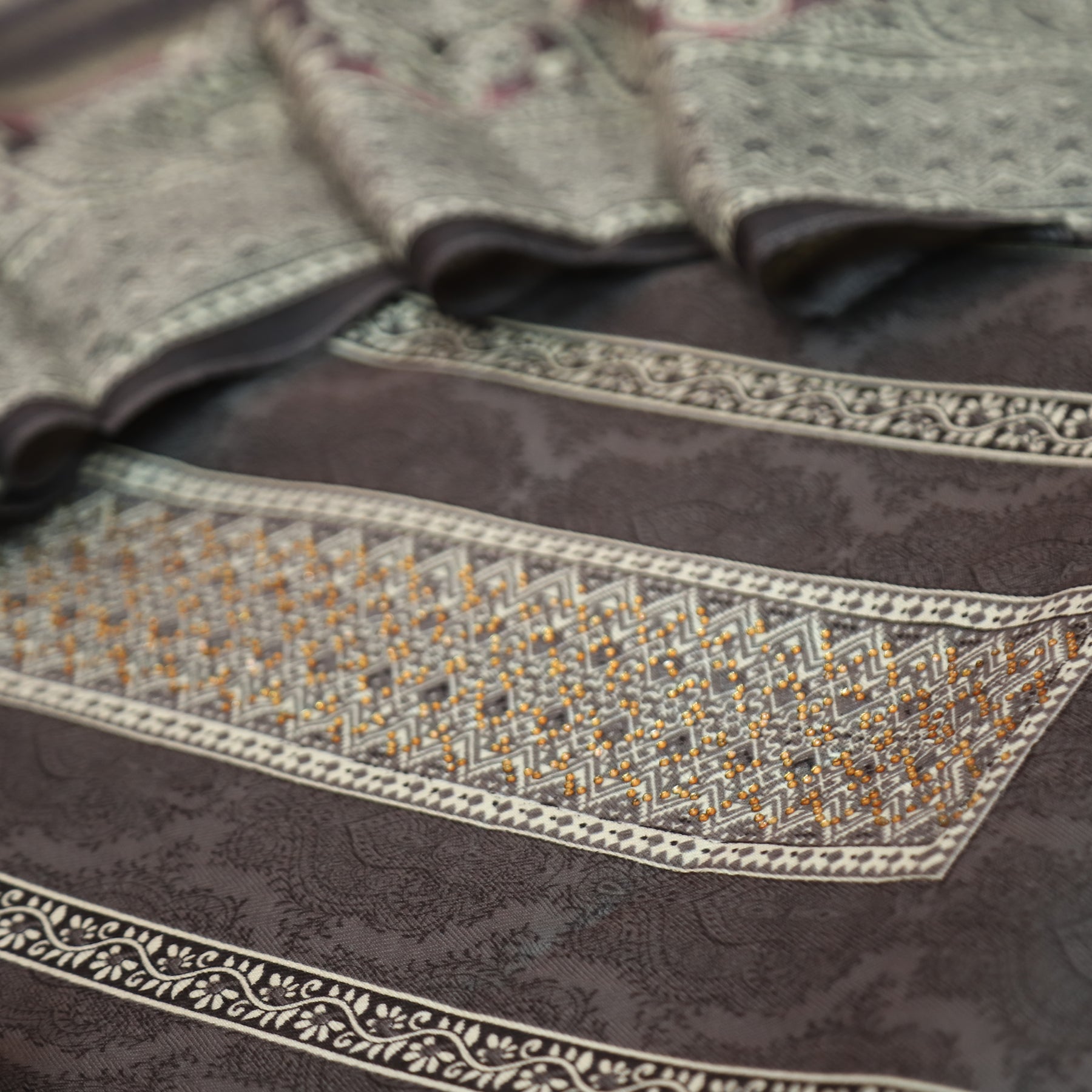 फरीदा Charcoal Black Panel Style Printed with Swarovski Semi Pashmina Winter Set
