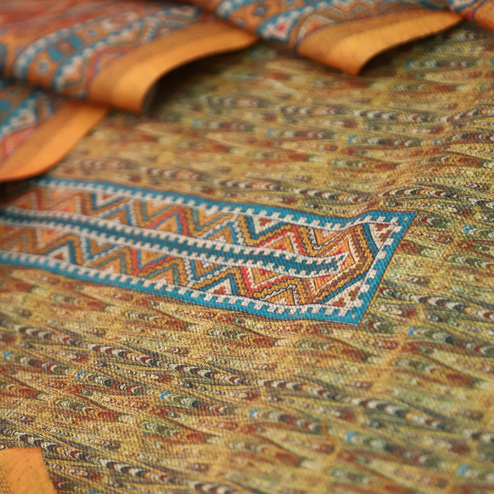 विशाखा Bright Yellow All Over Intricate Digital Printed Semi Pashmina Winter Set
