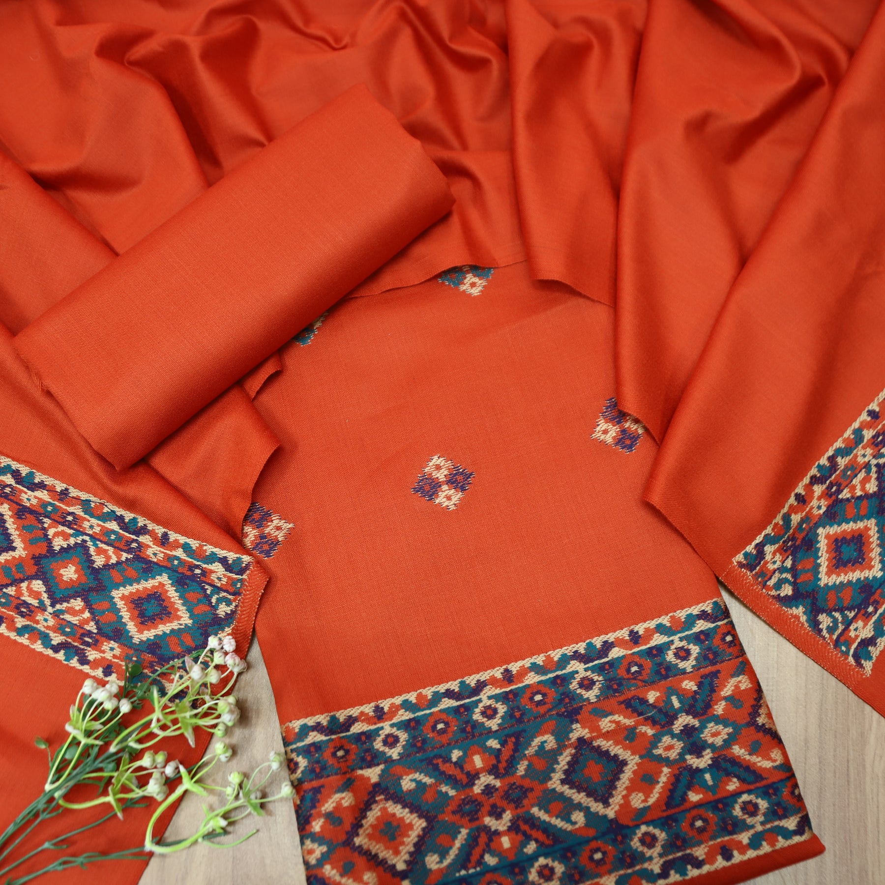 साध्गी Pumpkin Rust All Over Kullu Weaved Hem Semi Pashmina Winter Set