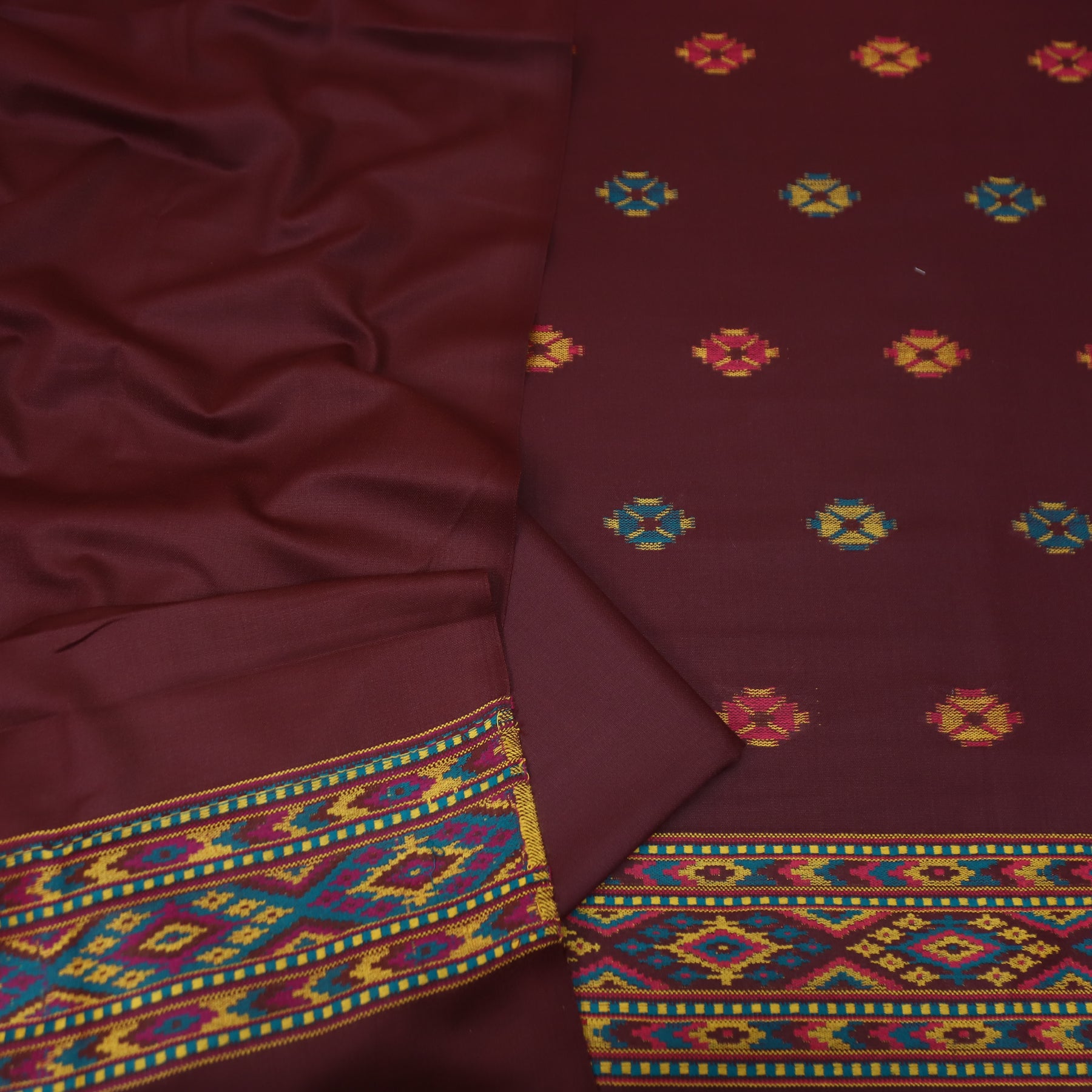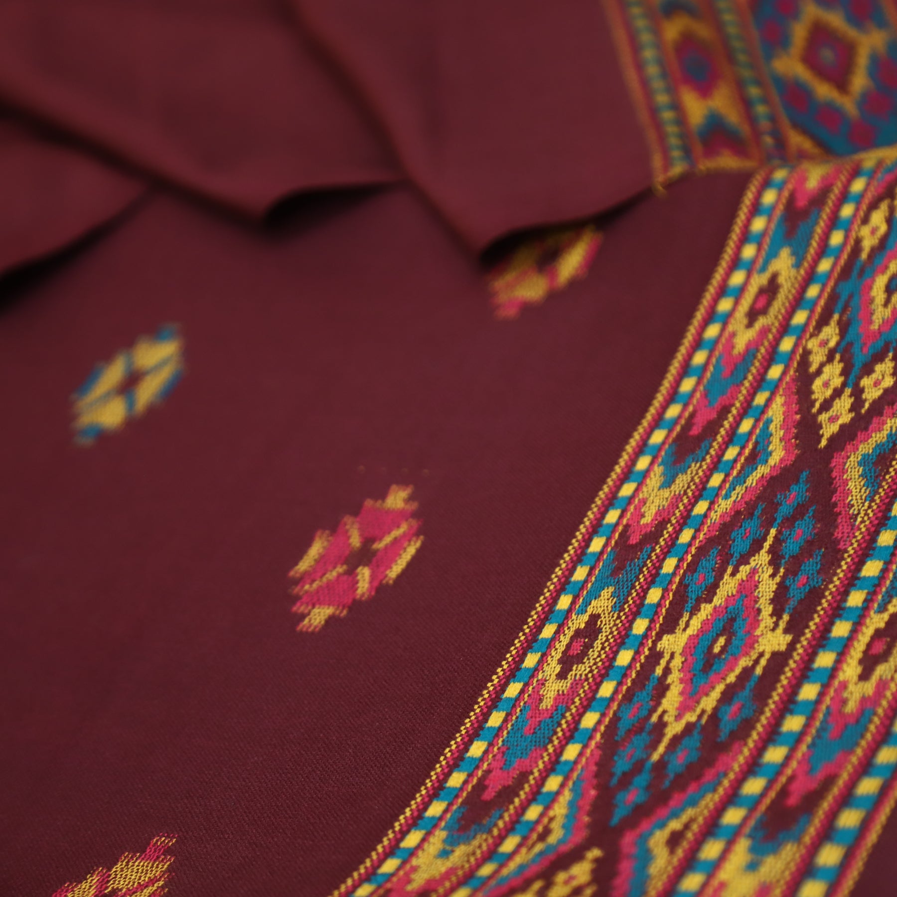 साध्गी Burgundy Wine All Over Kullu Weaved Hem Semi Pashmina Winter Set