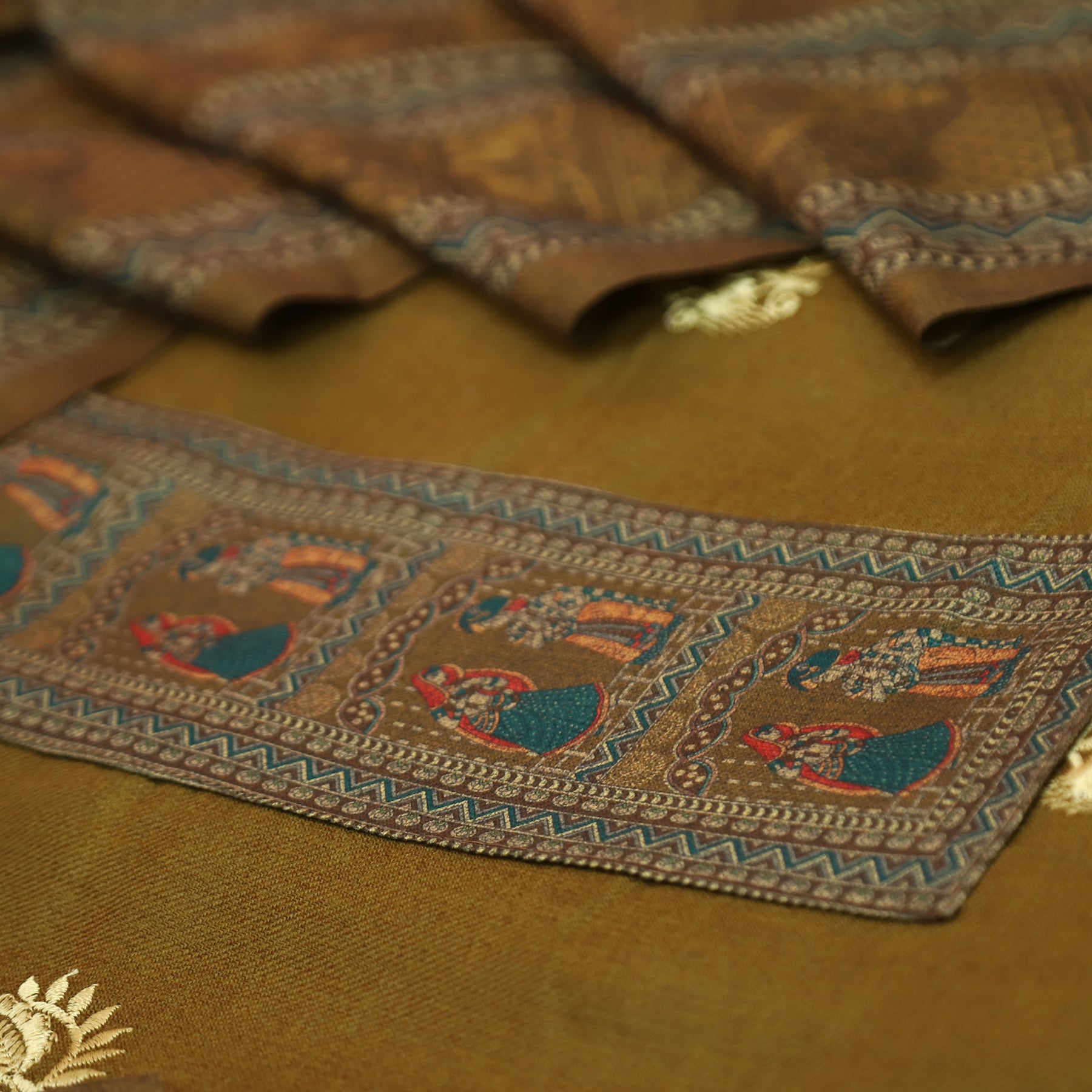 बंसी Dijon Yellow Print Patch in Floral Embroidery Work Semi Pashmina Winter Set