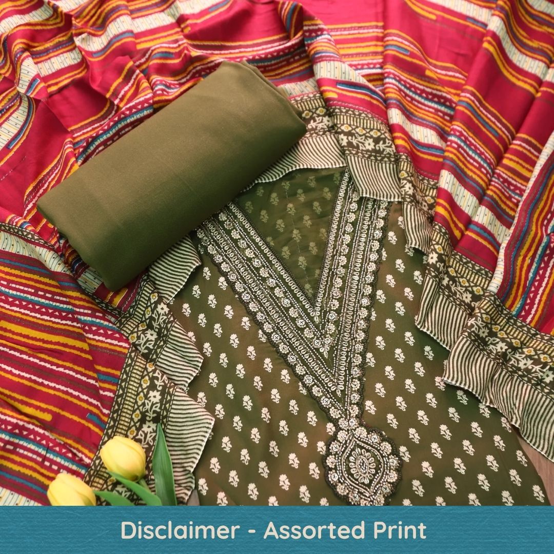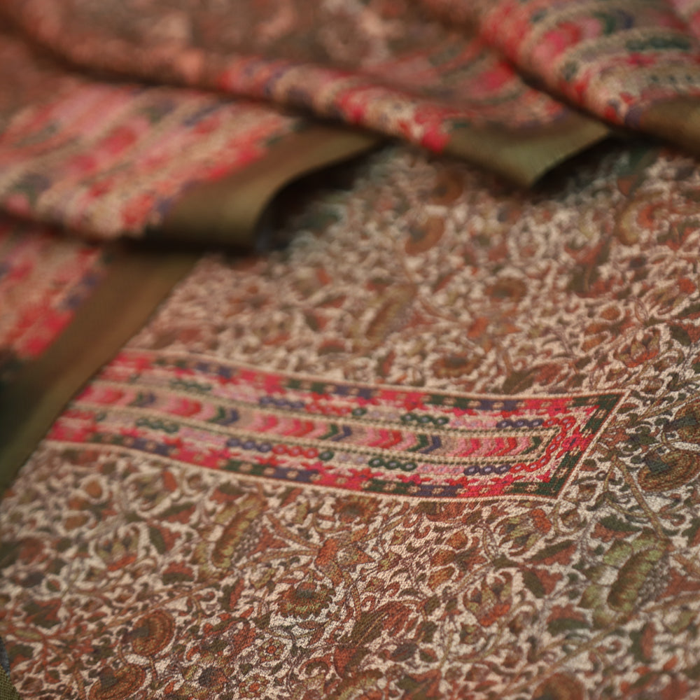 Rakhi Olive Green Chain Style Zari Detailing Digital Printed Semi Pashmina WInter Set