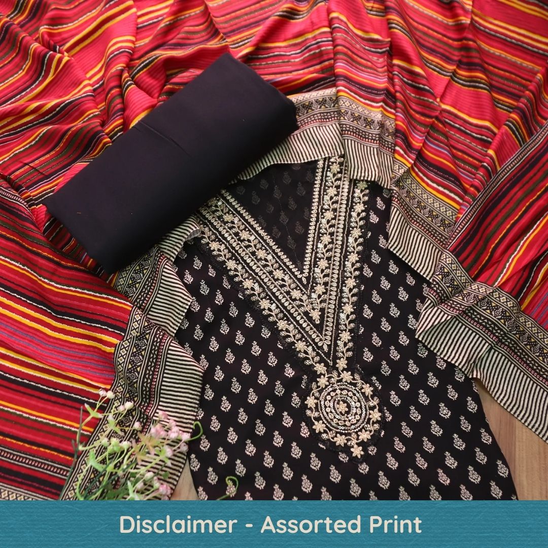 बेगमजान Night Black Enhanced with Thread Weaved Hem Semi Pashmina Winter Set