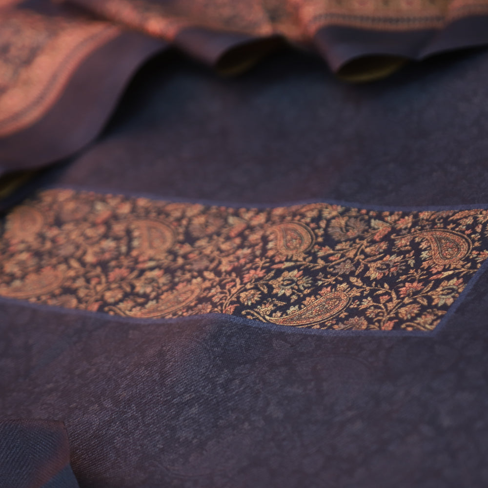 झिलमिल Air Navy Blue Elegant Digital Printed Semi Pashmina Winter Set