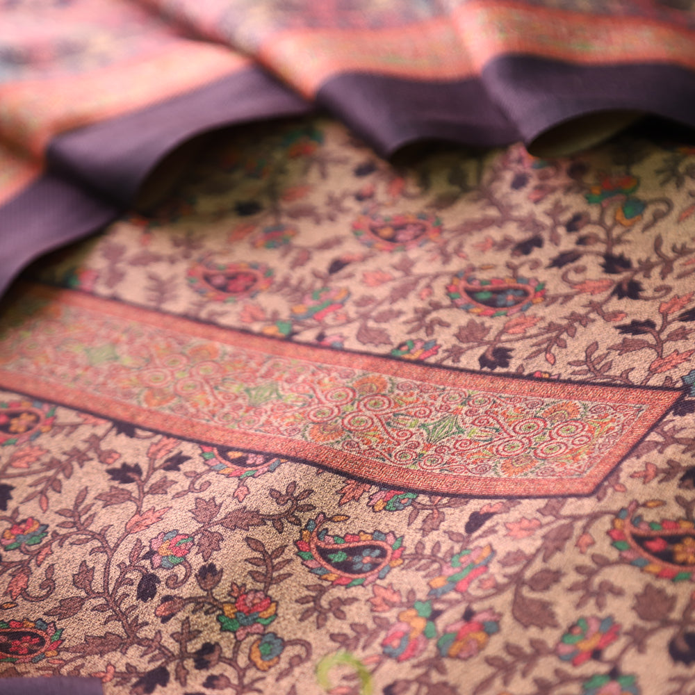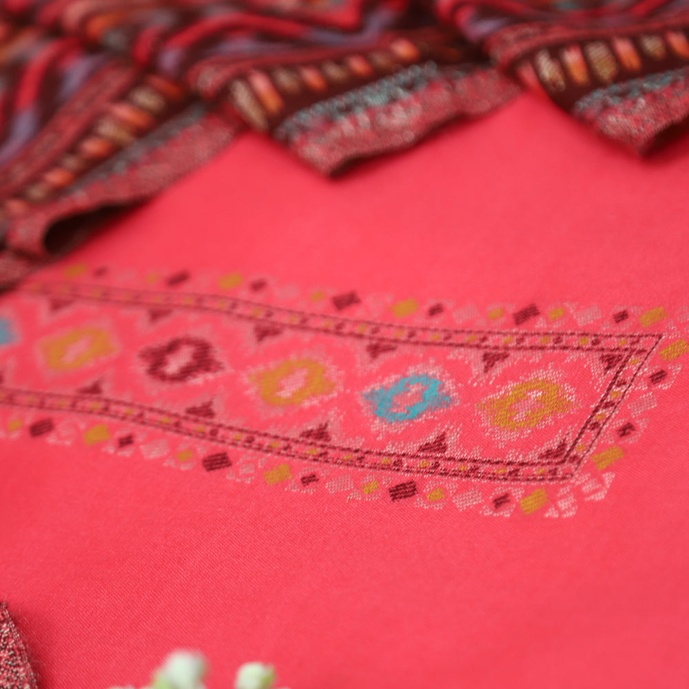 लिहाजी Coral Peach Kashida Digital Floral Printed Semi Pashmina Winter Set
