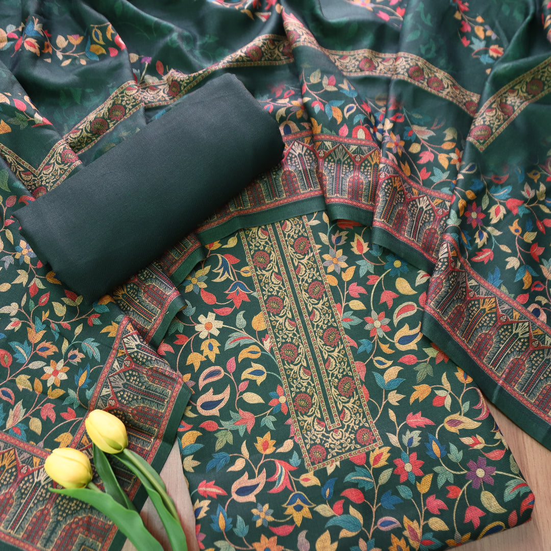 भानु Dark Green with Elegant All Over Embroidery Work Semi Pashmina winter Set