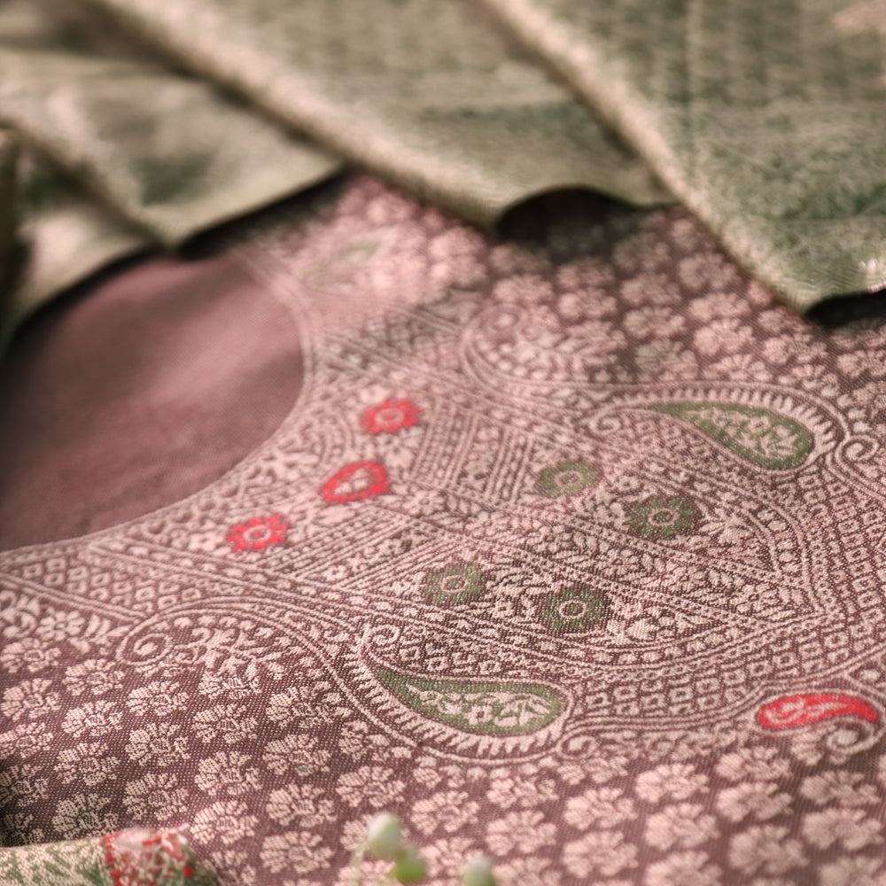 रोशनी Browine Choco All Over Zari Weaved in Semi Pashmina Winter Suit Set