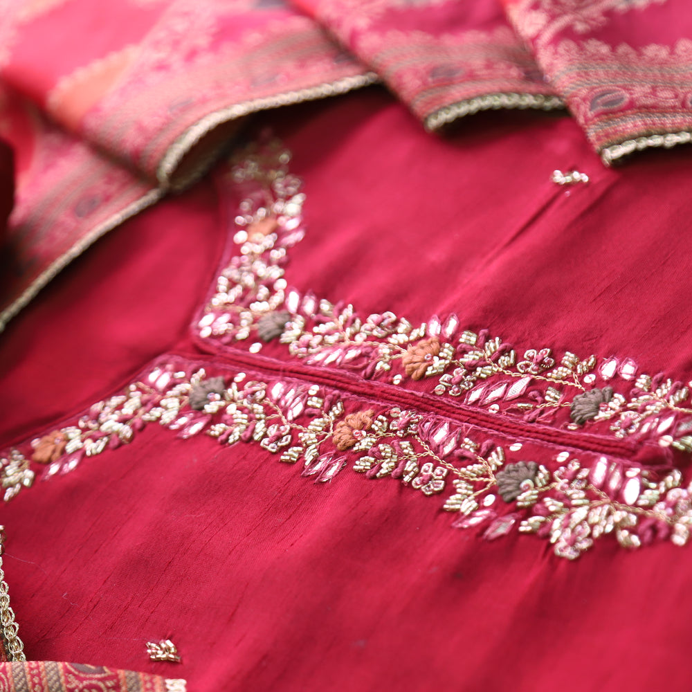 Saundarya Bride Red All Over Zari Work with Jacquard Weaved Dola Silk Suit Set