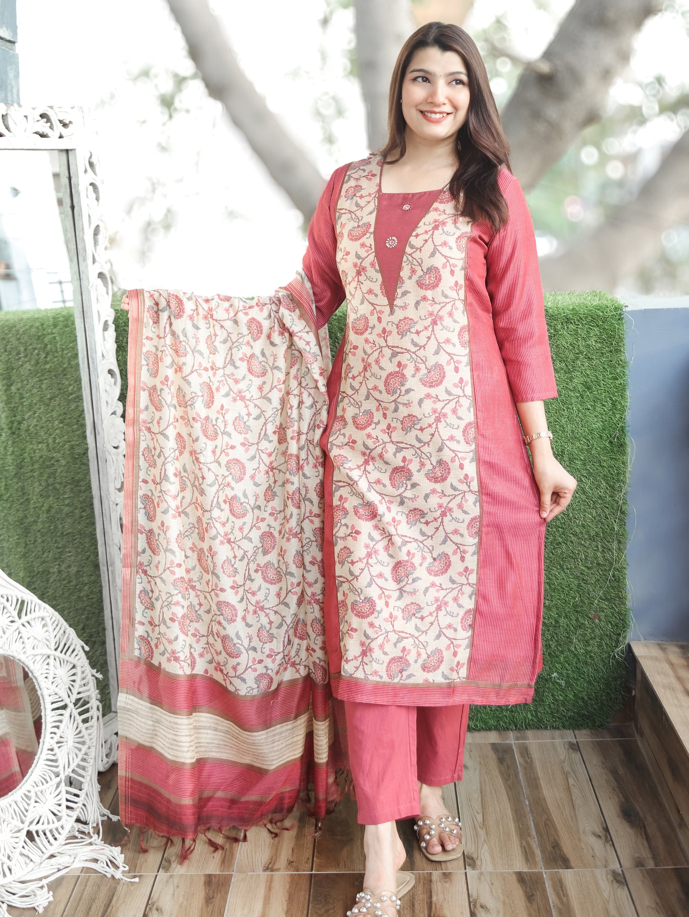 Clara Mauve Panel Tussar Chanderi 3 Piece Set