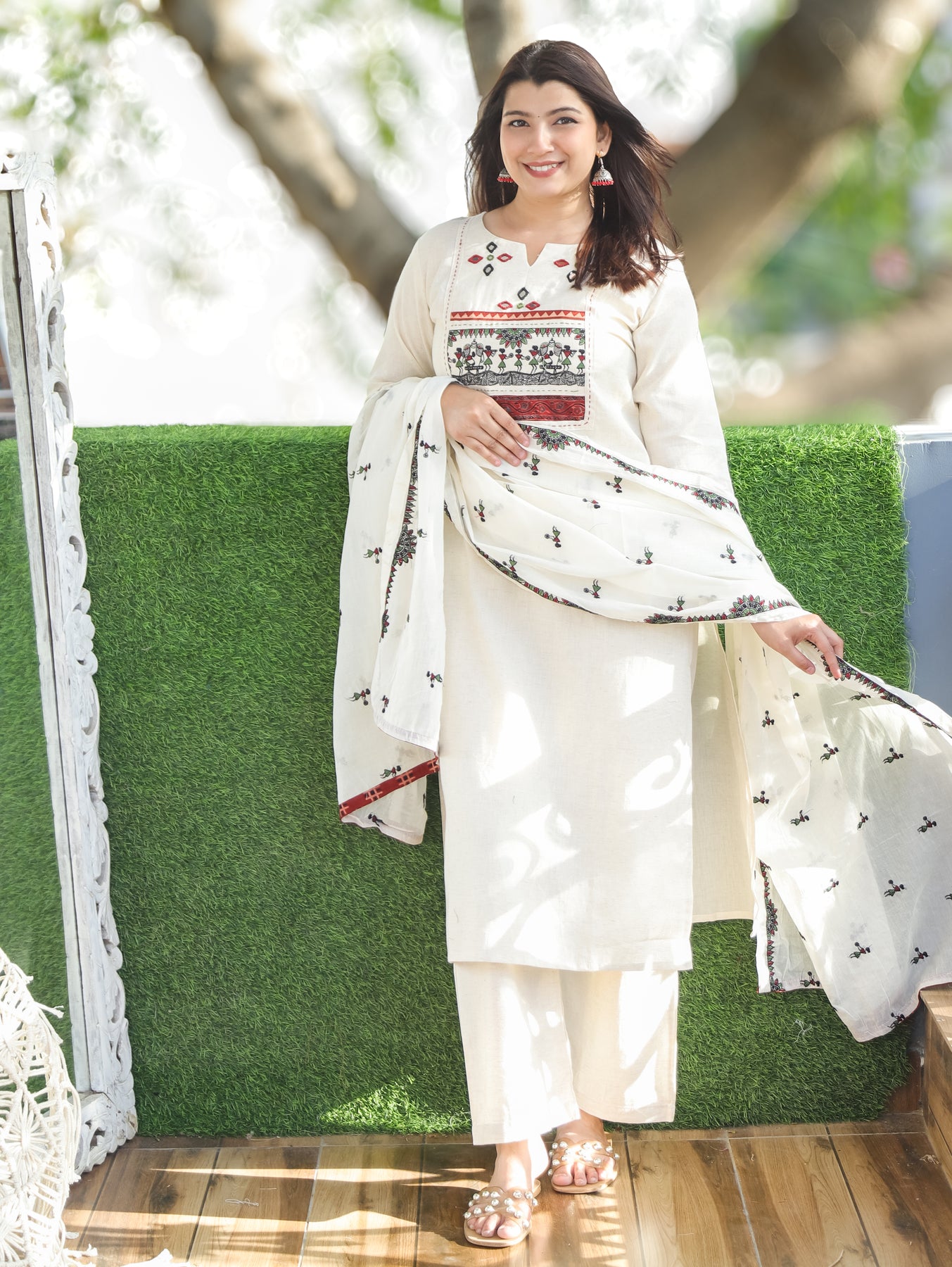 Fabric: Cotton (Top & Dupatta), Cotton (Bottom)Work: Warli Embroidered Work