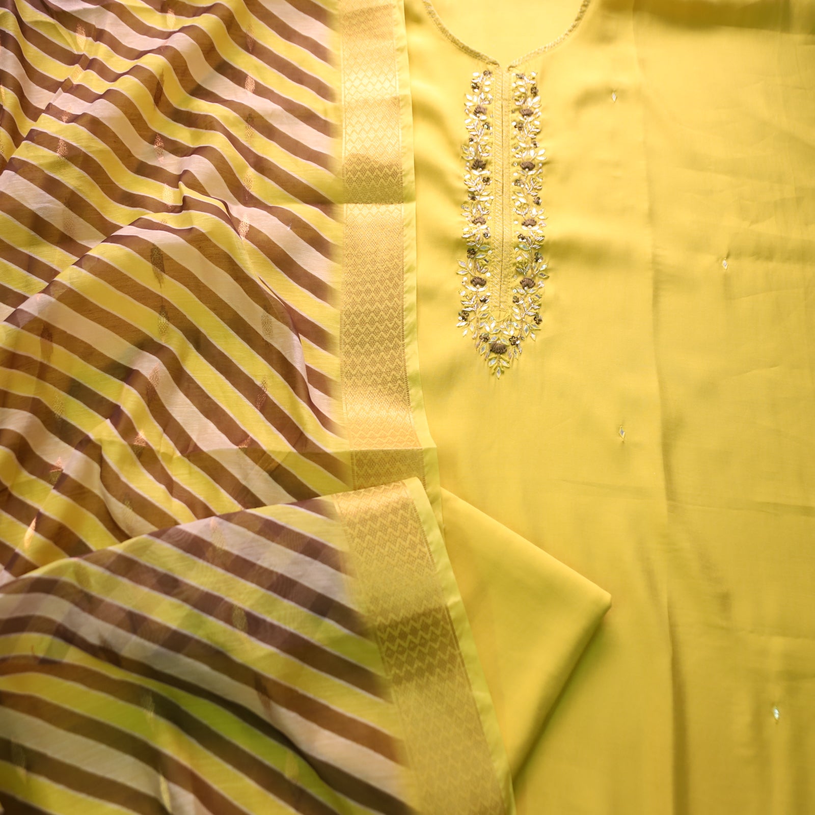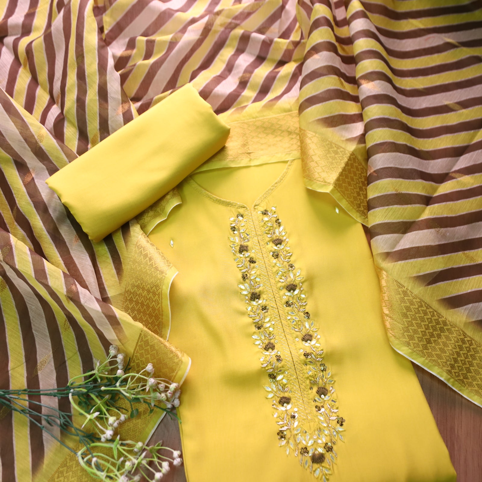 Maya Sunflower Yellow Kardana Embellish Neck Work in Modal Suit Set