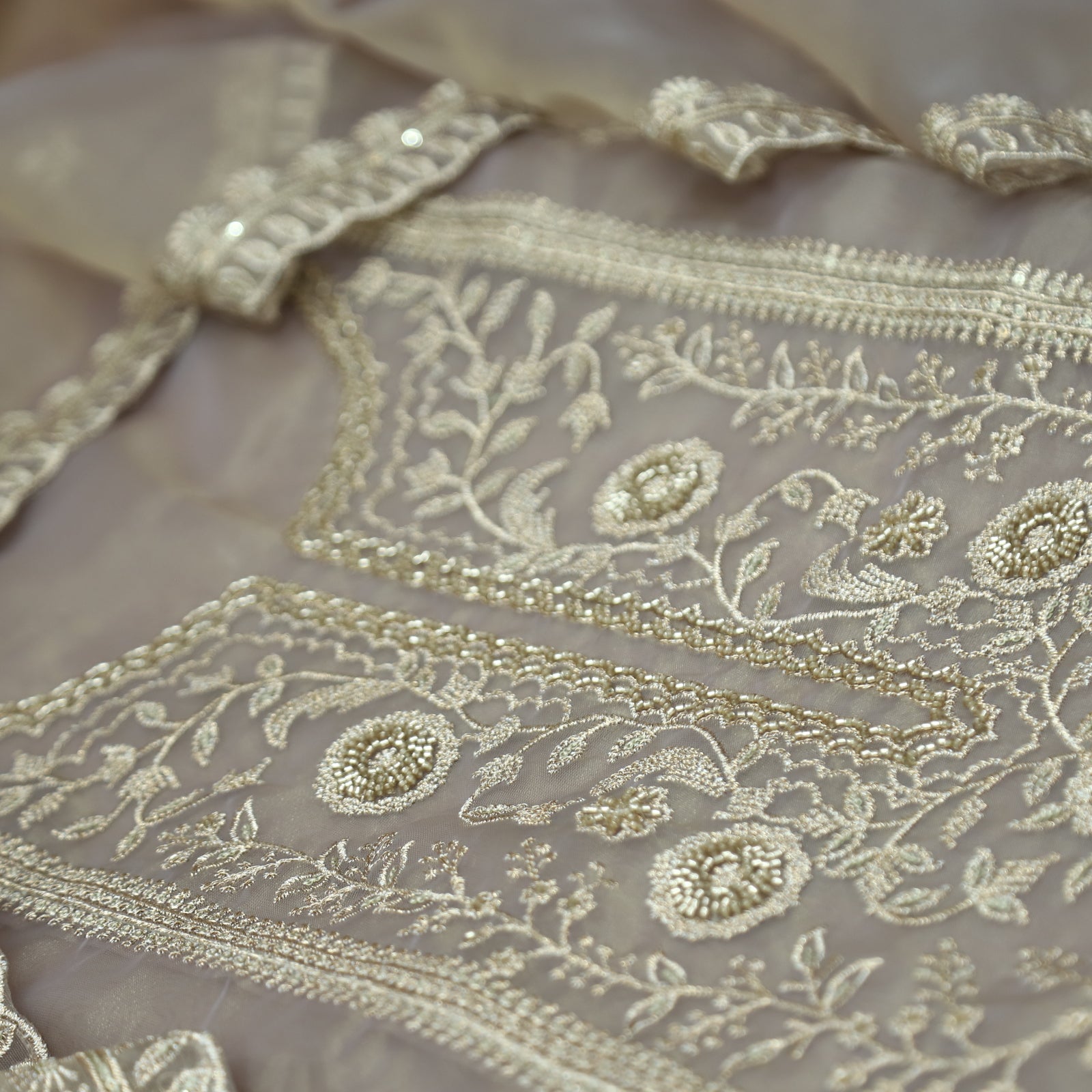 Sanaya Tan Hazel Panel Style with Embellish Zari and Kaddana Work Organza Set