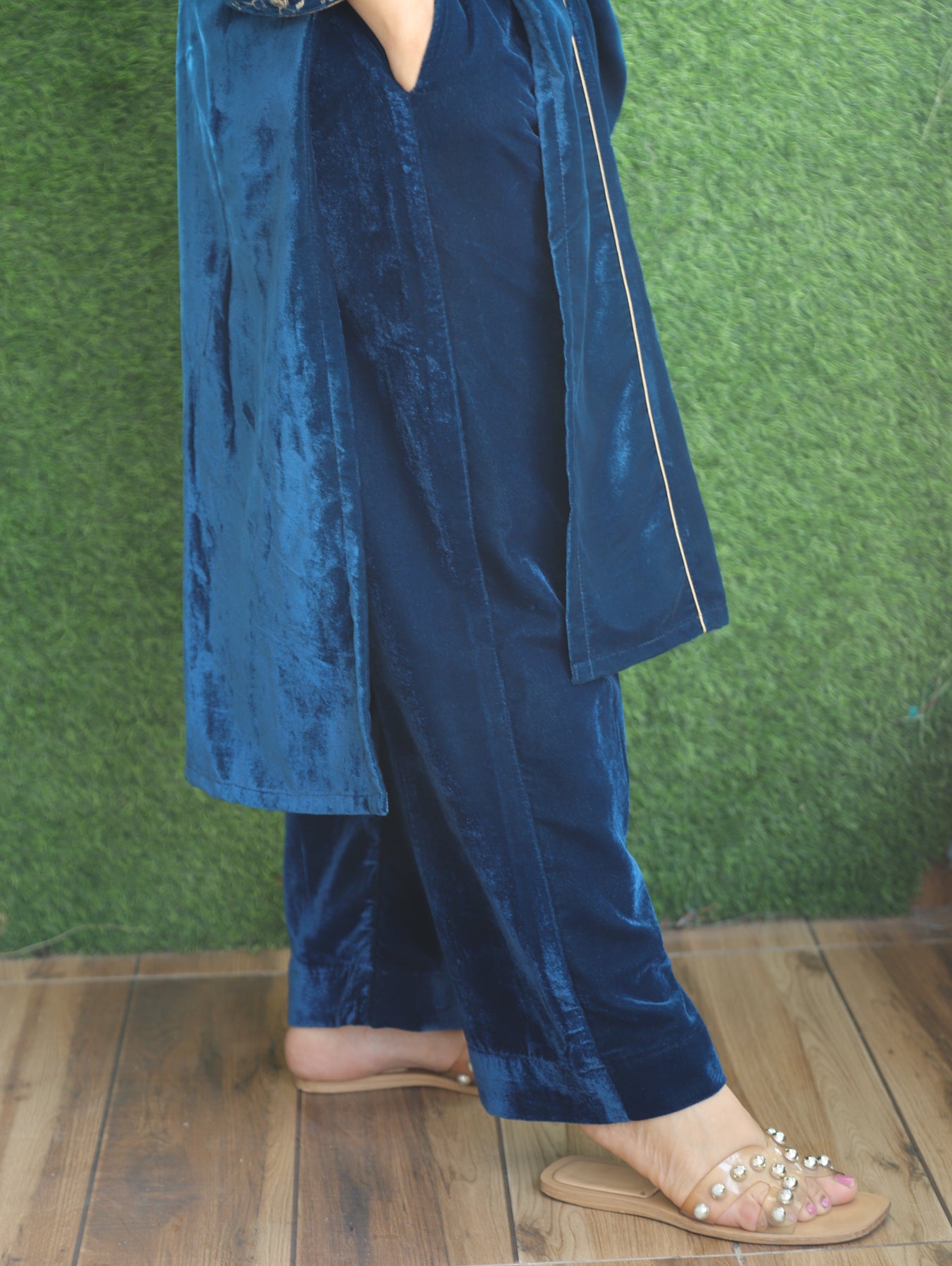 Ruby Royal Blue Plain Velvet Winter Bottom