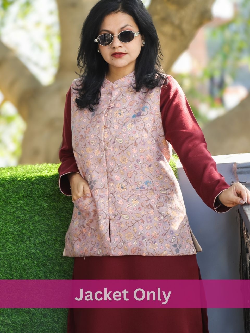 Saanvi Soft Lilac Kanni Printed Semi Pashmina Jacket with Pocket
