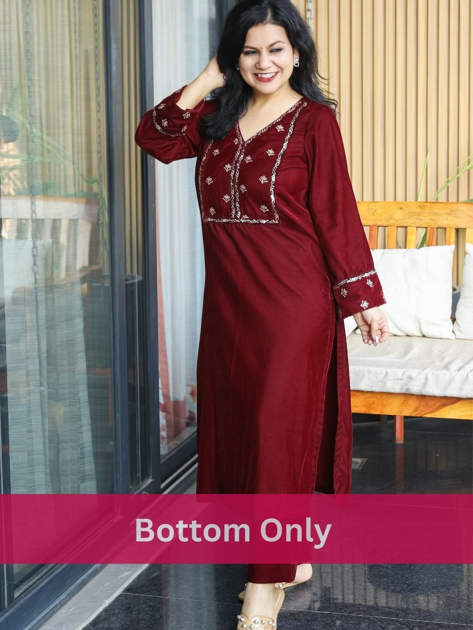 Soniya Cherry Maroon Mirror Work Gamthi Print Yoke Winter Twill Kurti