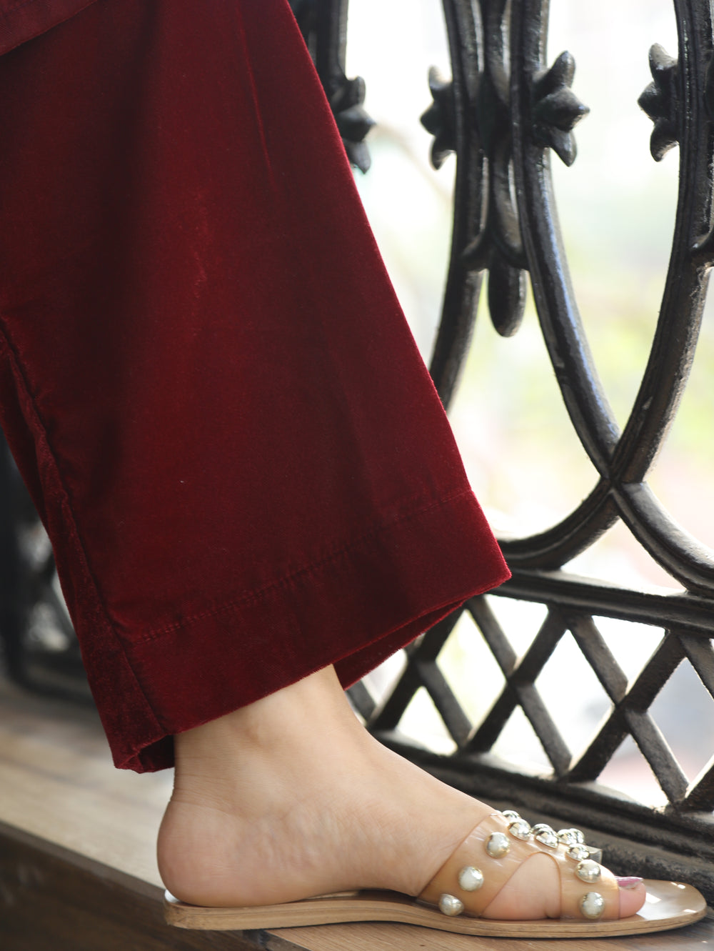 Inayat Raisin Purple Embroidered Keyhole Neck Velvet Winter Kurti