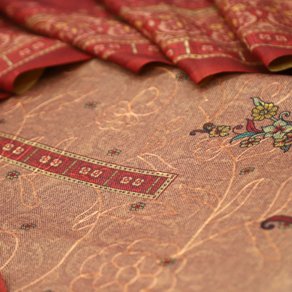सुरभि Powder Brown All Over Kanni Floral Printed Semi Pashmina Winter Set