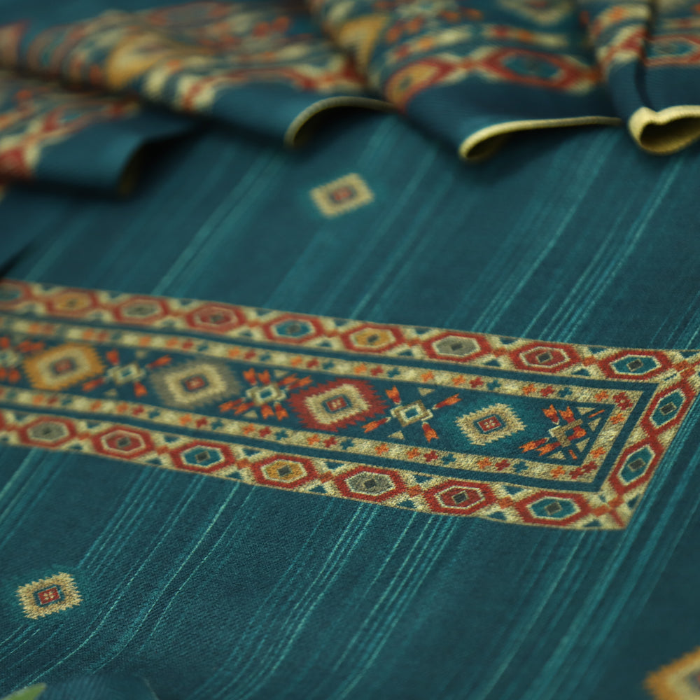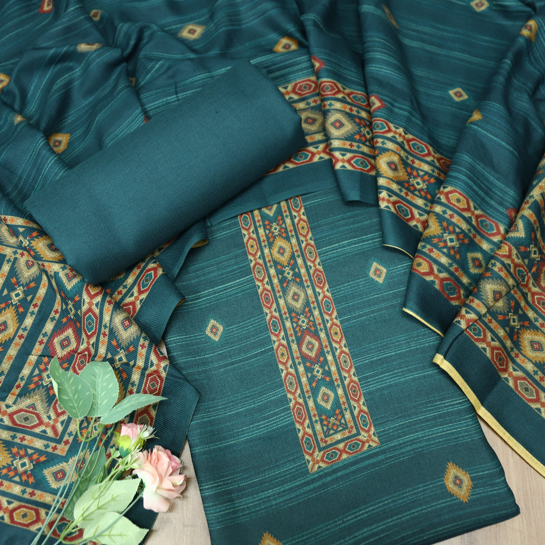 शाहीमहल Emerlad Green Elegant Panel Print with Patra Work Semi Pashmina winter Set