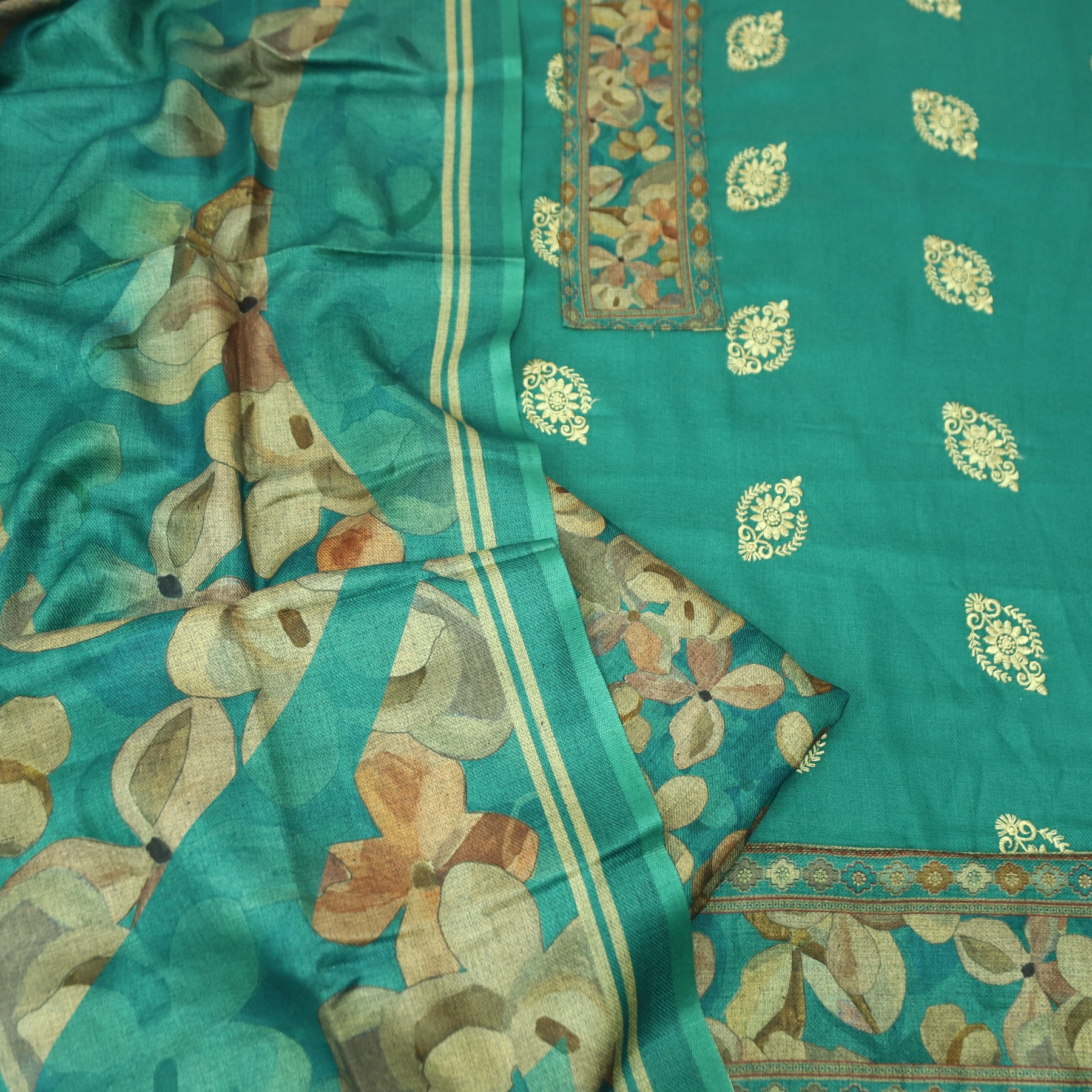 अपूर्वा Emerlad Teal Floral Print in Embroidery Floral Work Semi Pashmina Winter Set