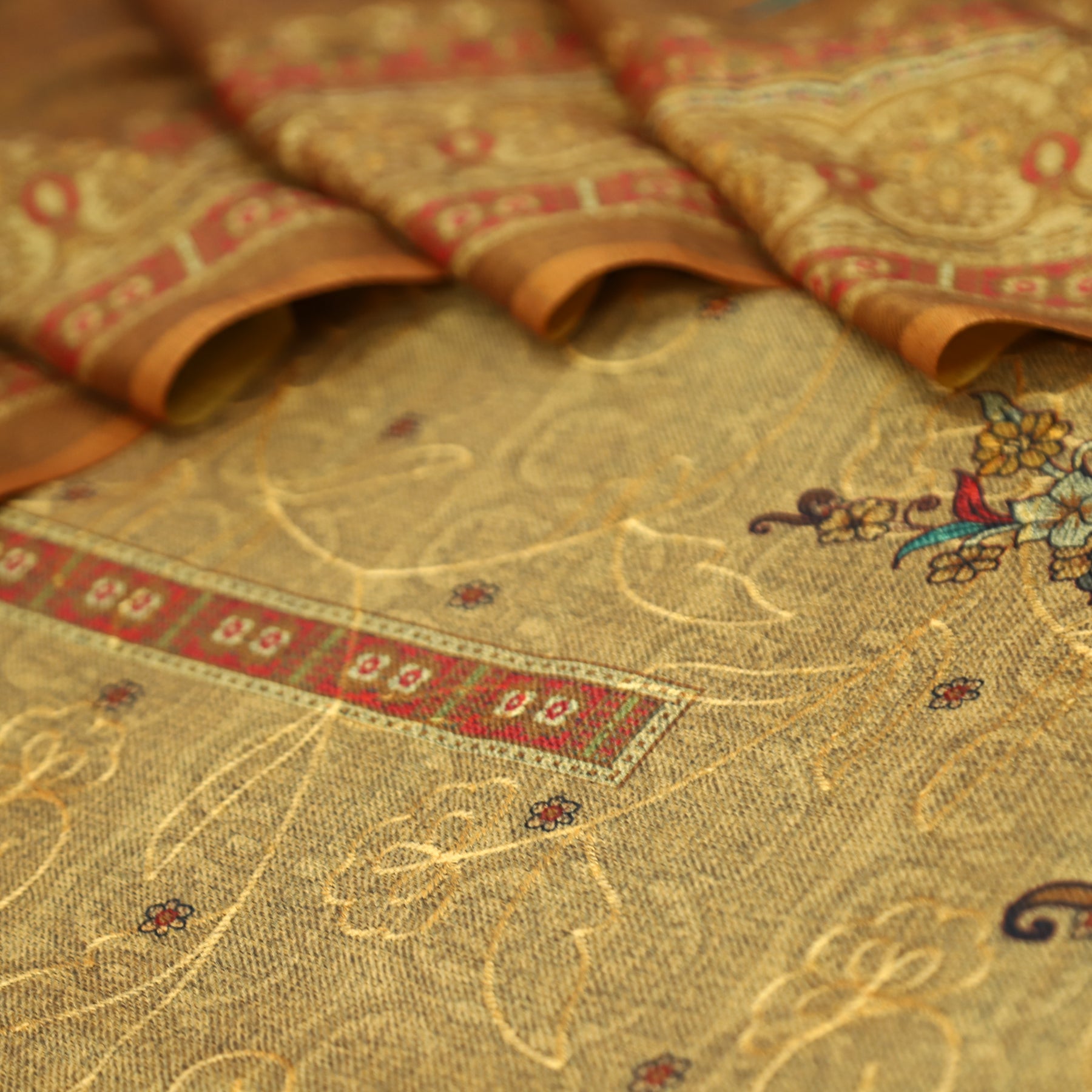 गुलकंद Dijon Yellow Floral Print Hemline with Thread Weaved Semi Pashmina Winter Set