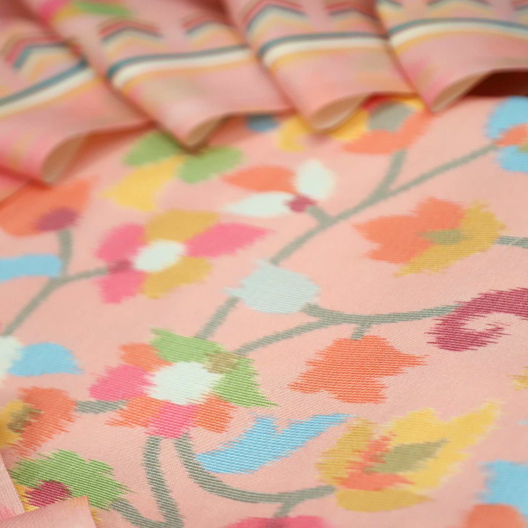 Work- A soft and elegant semi-pashmina suit set featuring beautiful digital floral printing all over. The pastel tones and smooth texture offer a refreshing, graceful look, making it a perfect pick for everyday elegance and comfort..