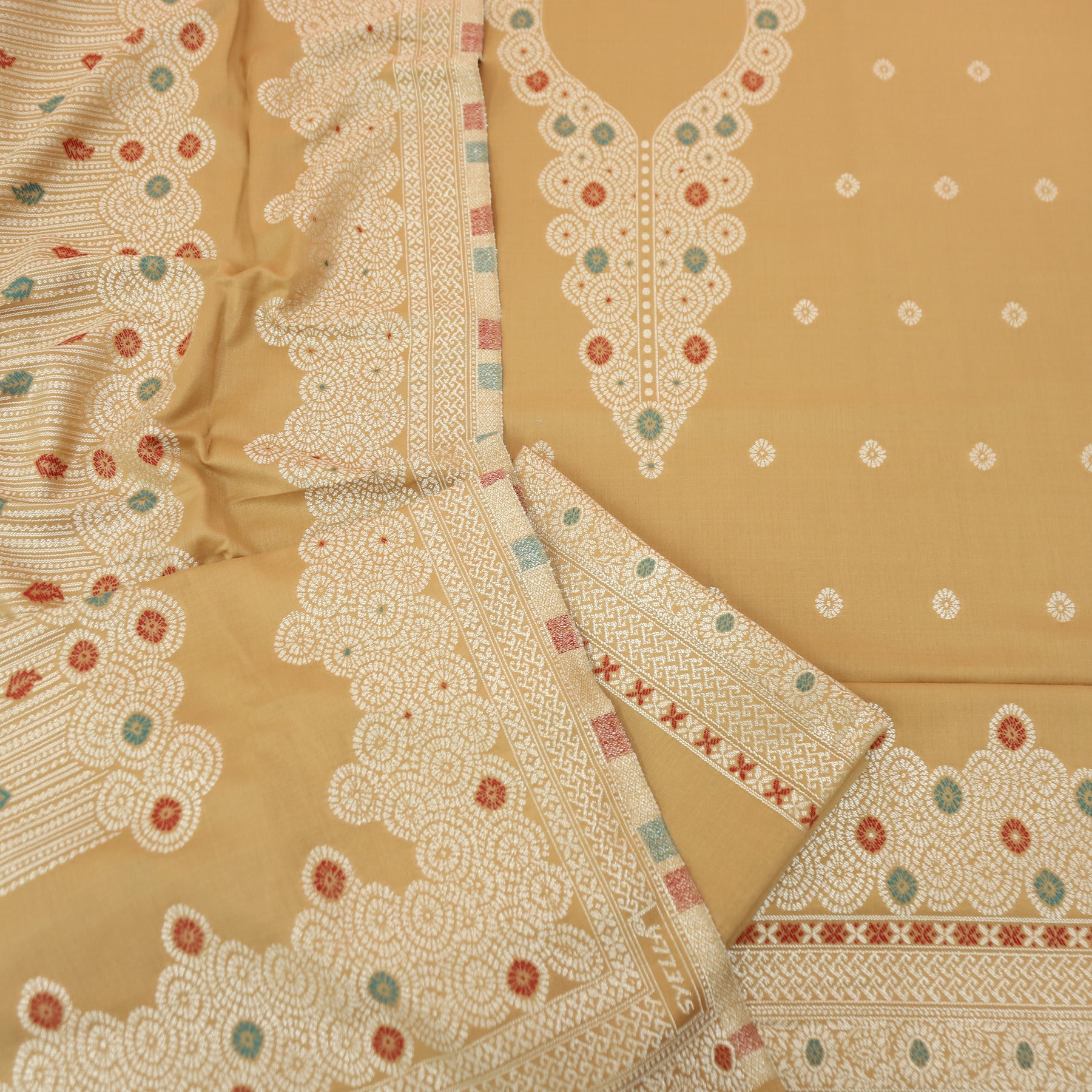 सांभवी Skin Beige Defined By Thread and Zari Weaved Neck Semi Pashmina Winter Set