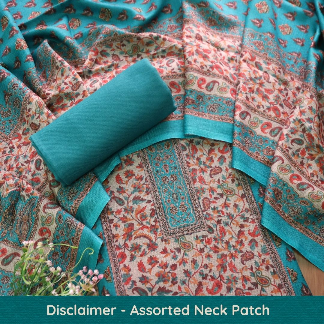 रुद्रा Aqua Turquoise All Over Digital Kanni Printed Semi Pashmina Winter Set