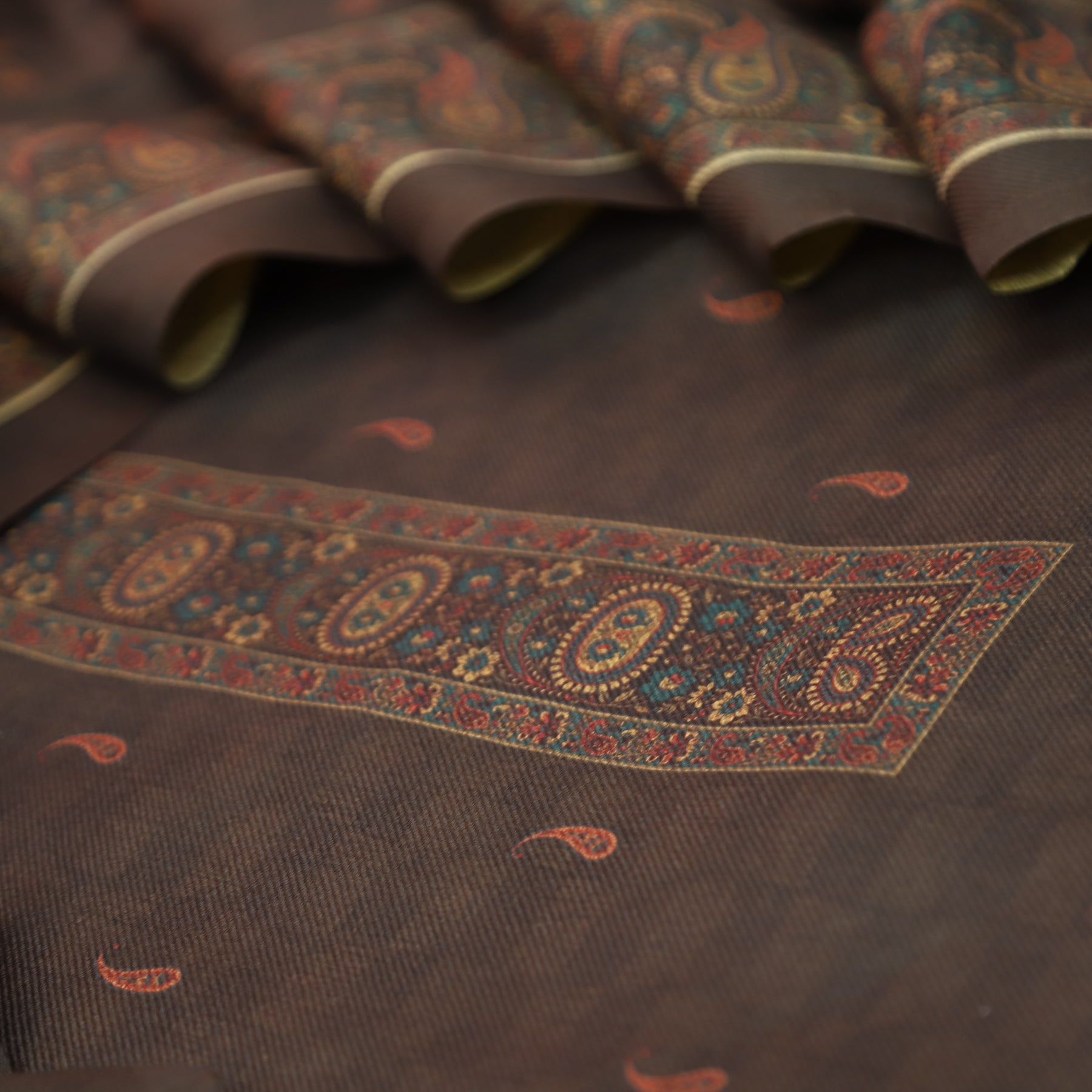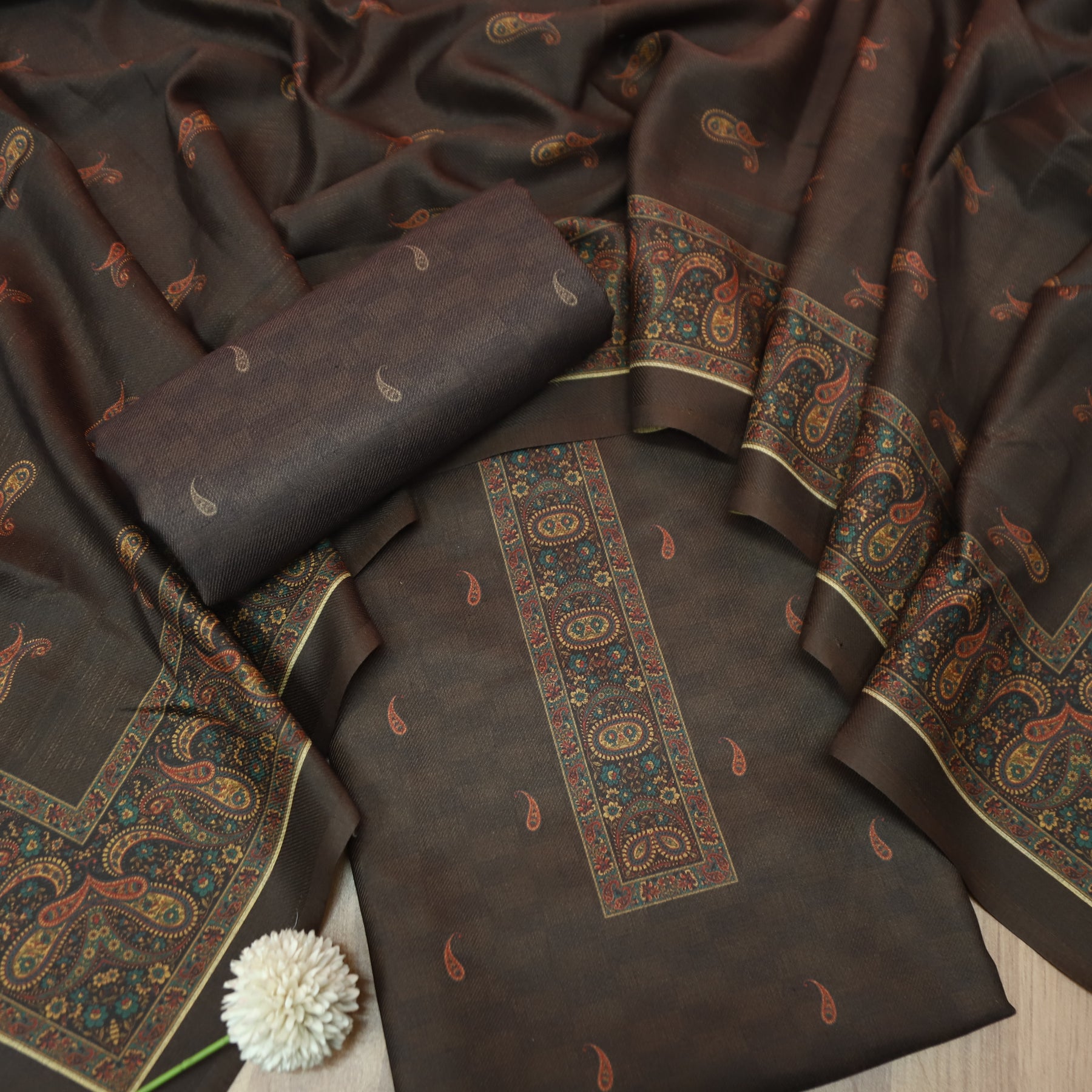 रुबीना Dark Choclate Elegant Digital Self Printed and Hem Semi Pashmina winter Set