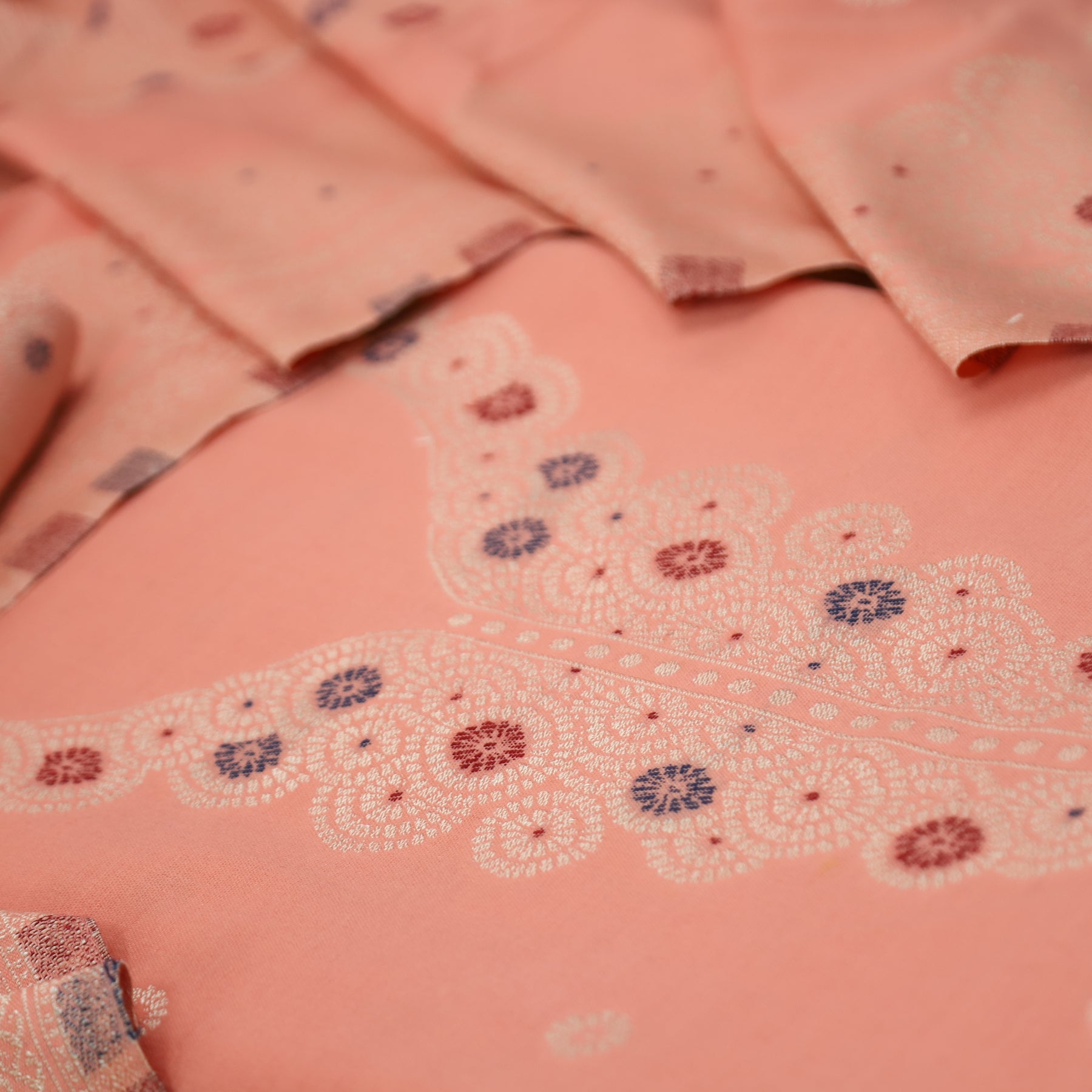 सांभवी Soft Peach Defined By Thread and Zari Weaved Neck Semi Pashmina Winter Set