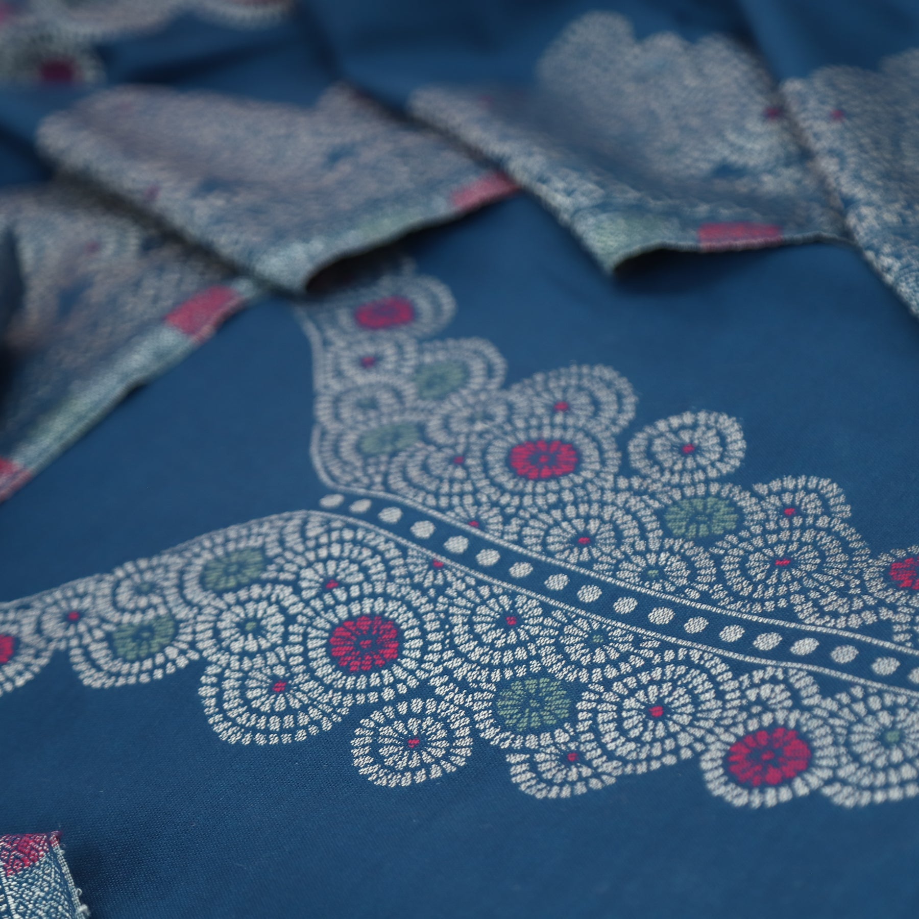 सांभवी Cerulean Blue Defined By Thread and Zari Weaved Neck Semi Pashmina Winter Set