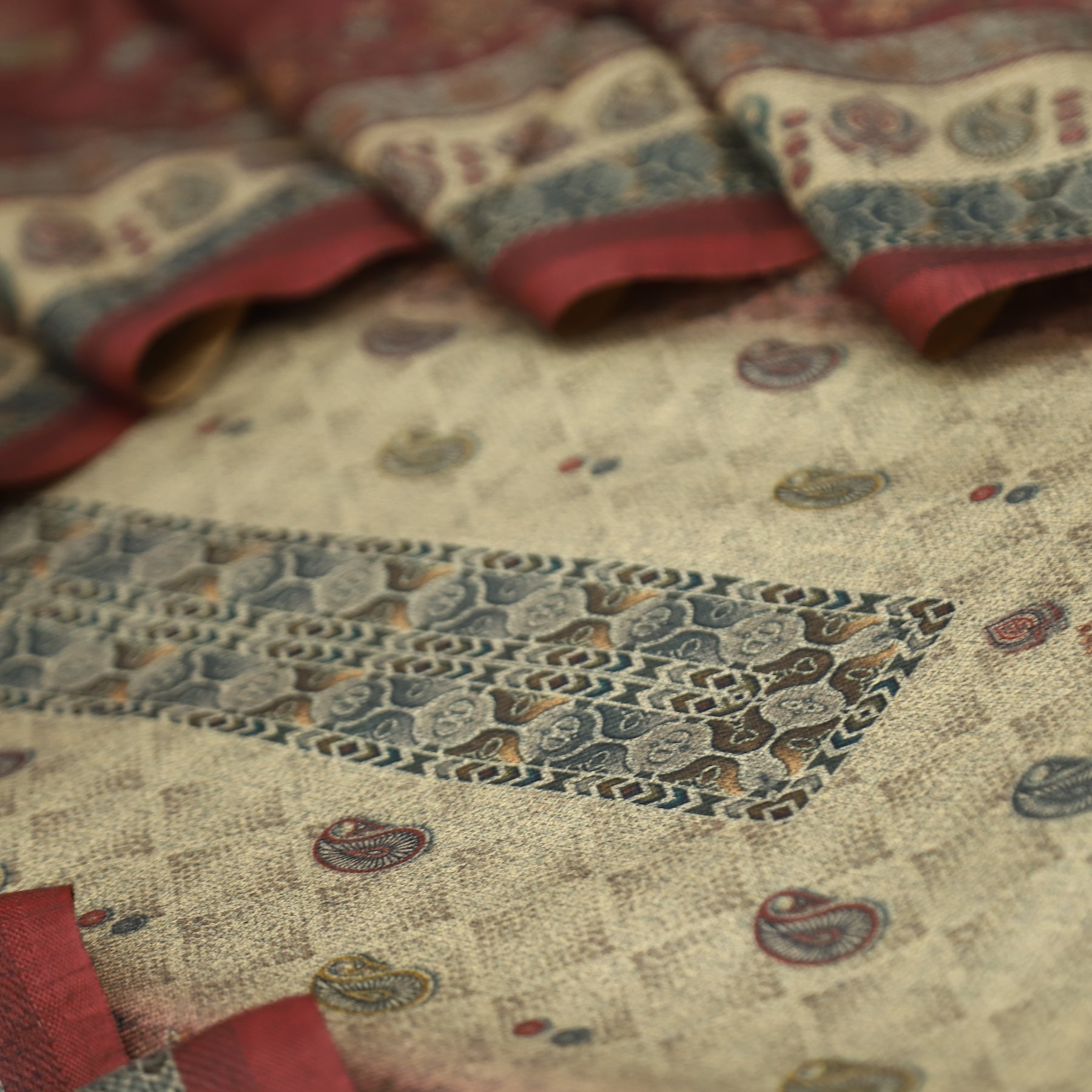 सांभ Beige with Maroon Panel Style Digital Printed Semi Pashmina Winter Set