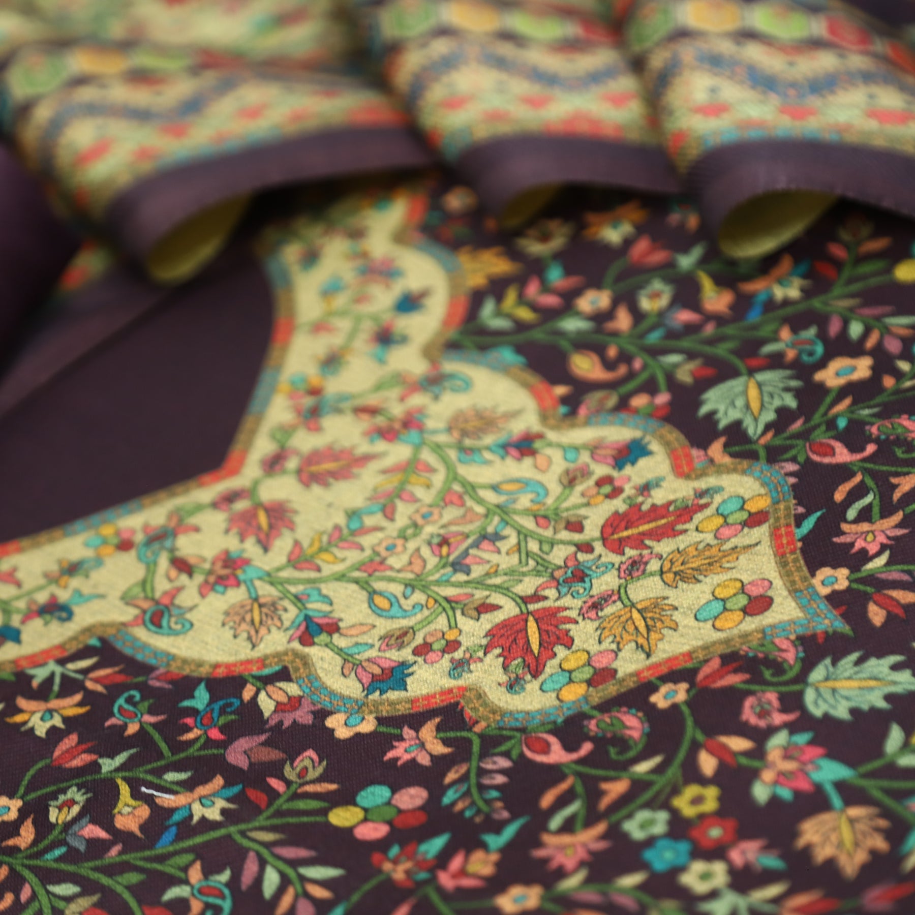 सिन्दूरी Raisin Purple Digital Kashmiri Printed Semi Pashmina Winter Suit Set