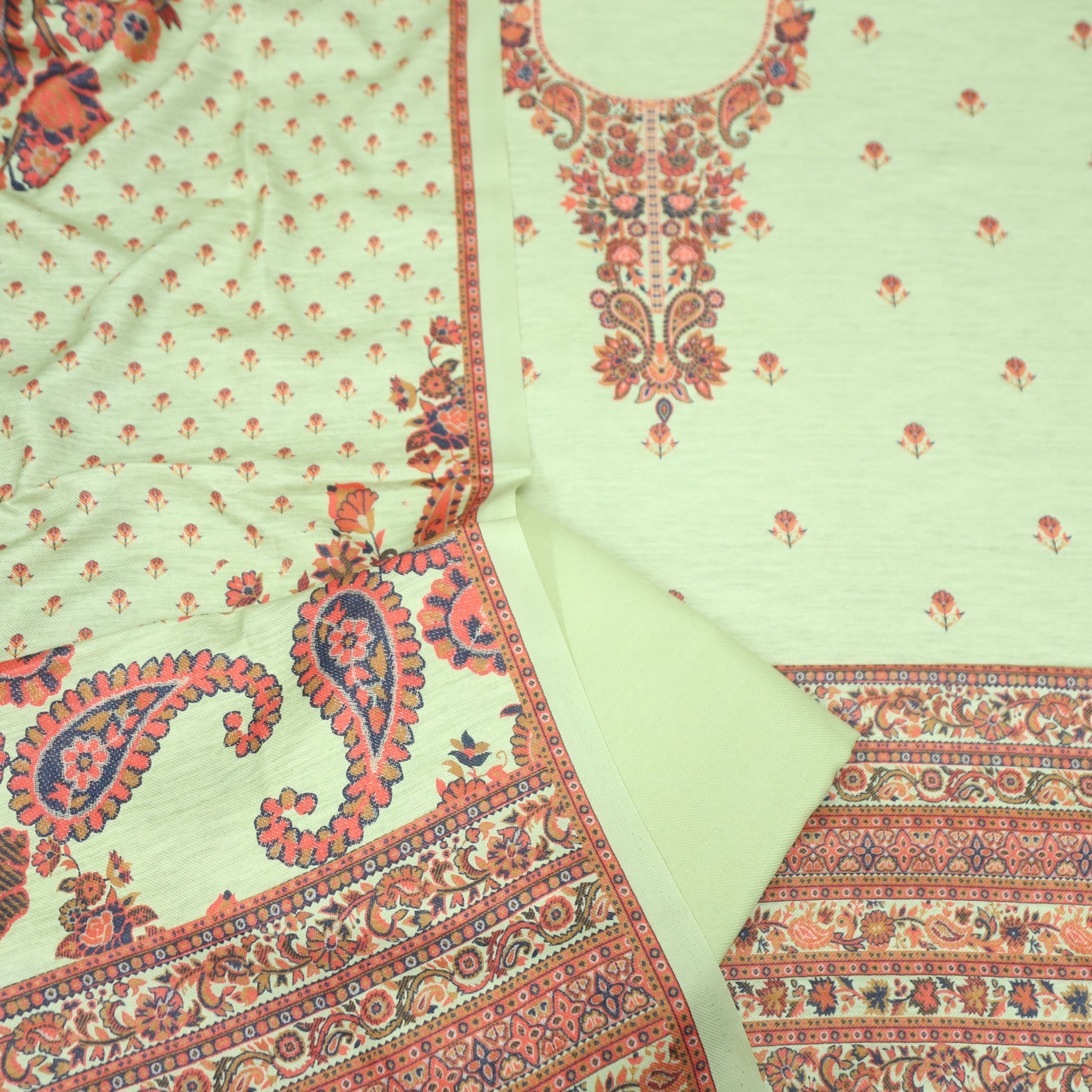 Vaani Minty Green Kashmiri Kanni Printed Semi Pashmina Winter Set