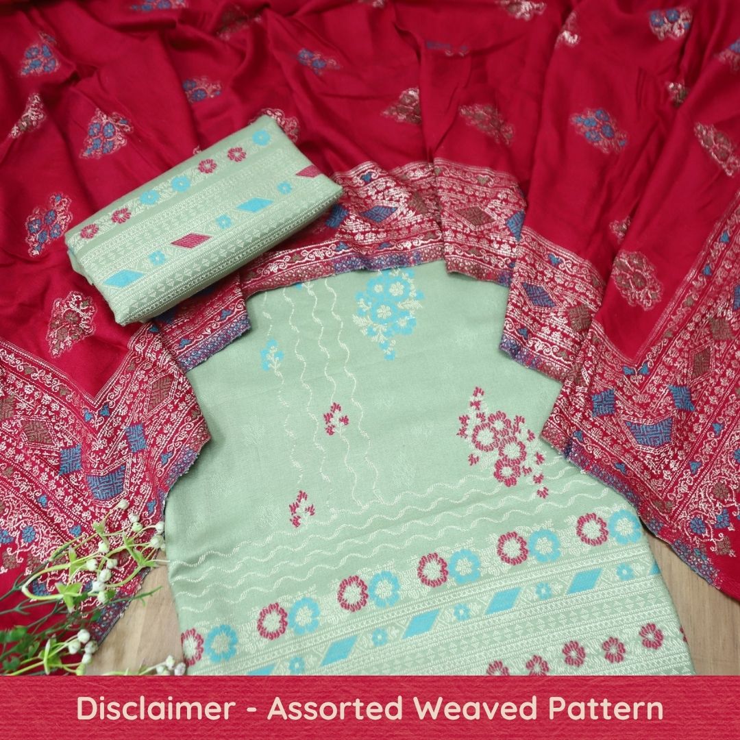 इशानी Fern Green All Over Zari Weaved in Semi Pashmina Winter Suit Set