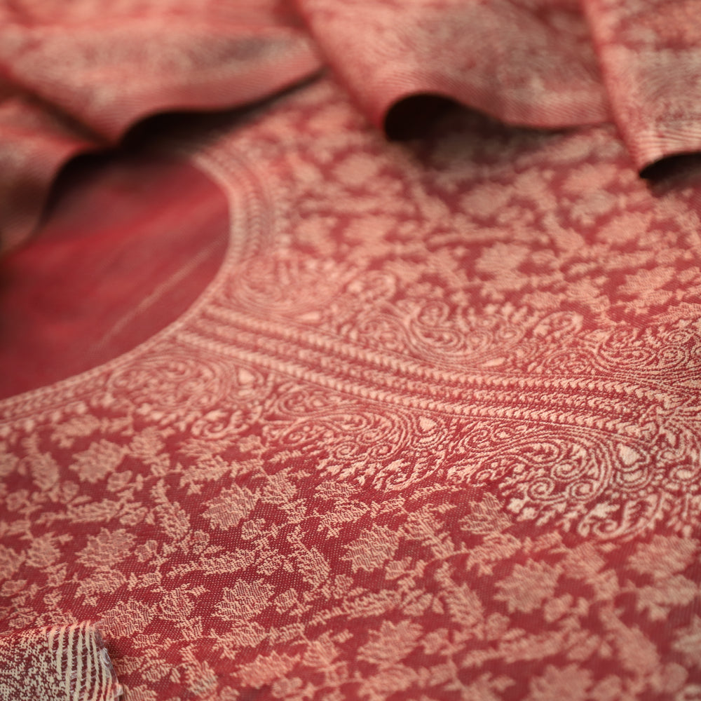 सोनिया Maroon Red Thread Weaved with Zari Work Semi Pashmina Winter Set