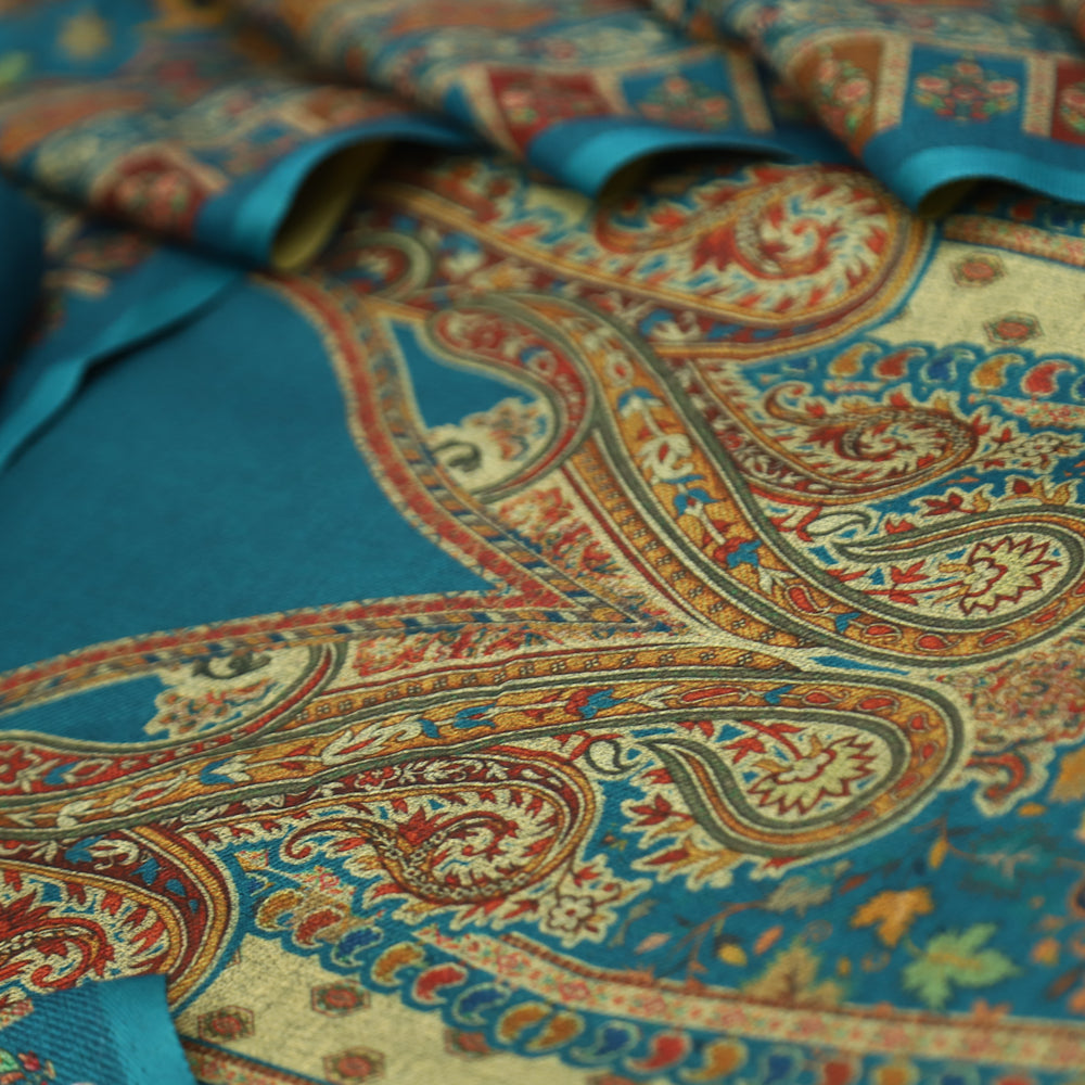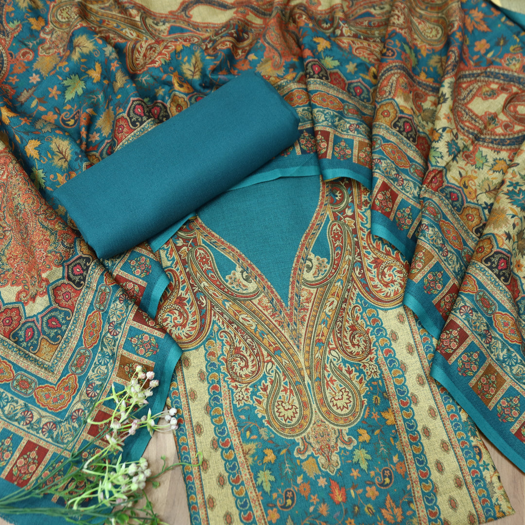 काशगिरि Cerulean Teal with Elegant Digital Printed Work Semi Pashmina winter Set