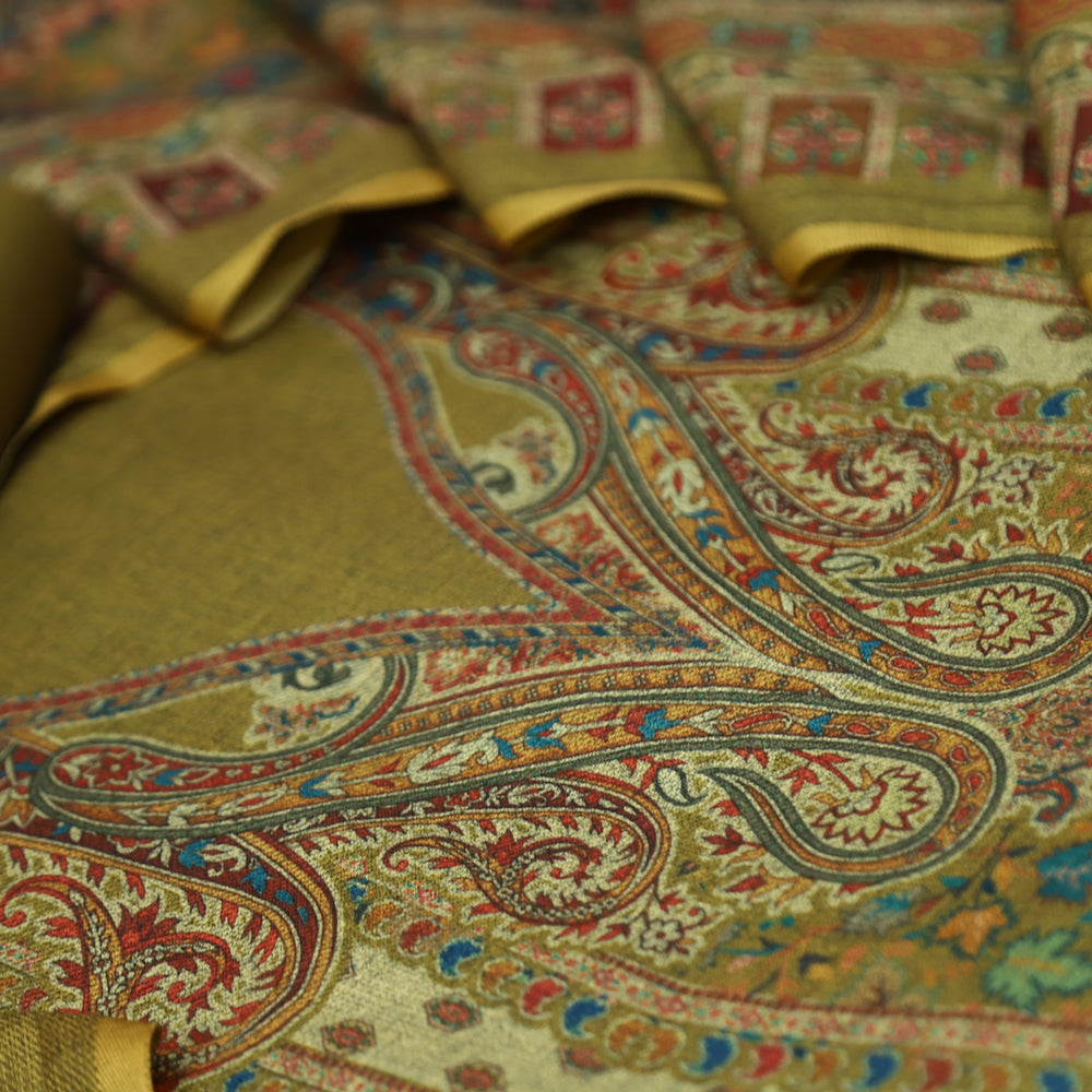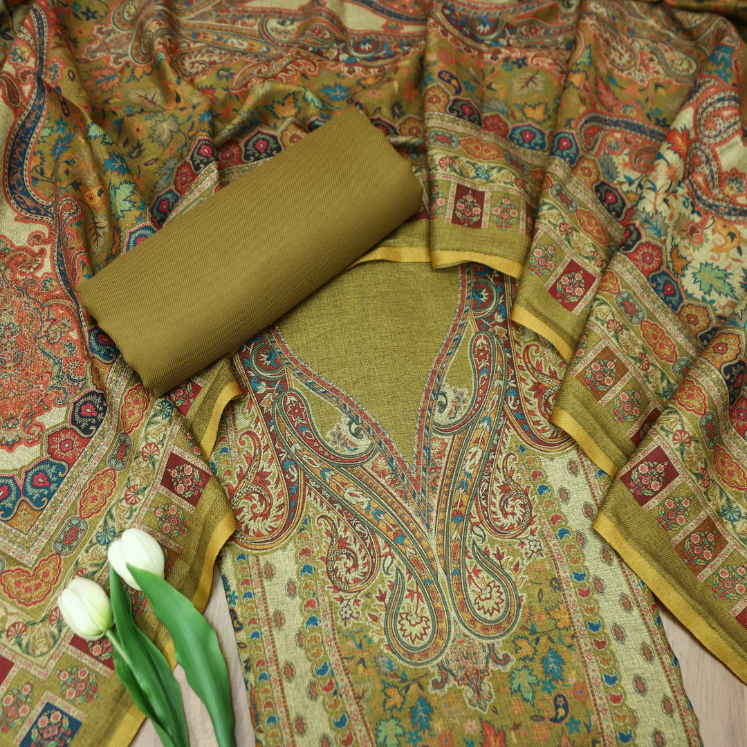 काशगिरि Olive Yellow with Elegant Digital Printed Work Semi Pashmina winter Set
