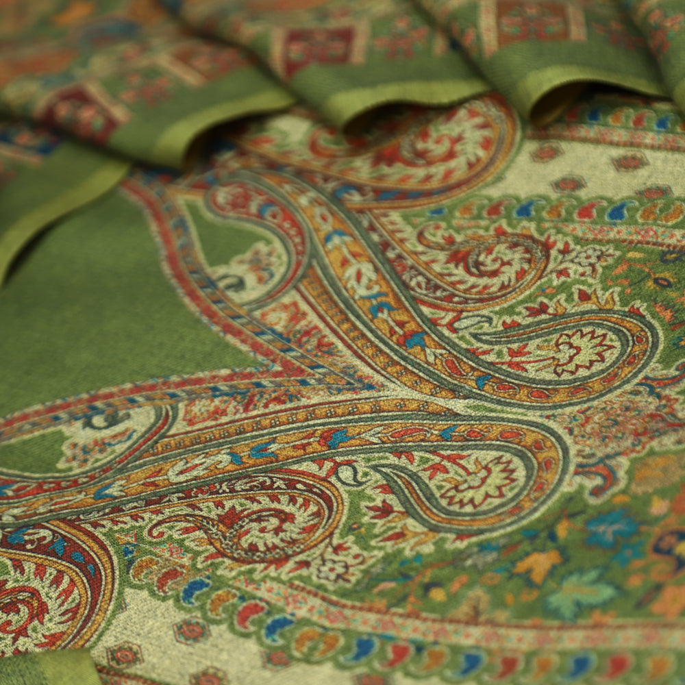 काशगिरि Grass Green with Elegant Digital Printed Work Semi Pashmina winter Set