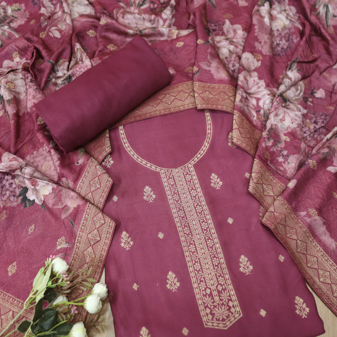 आस्था Berry Red Enriched with Digital Floral Printed Semi Pashmina Winter Set