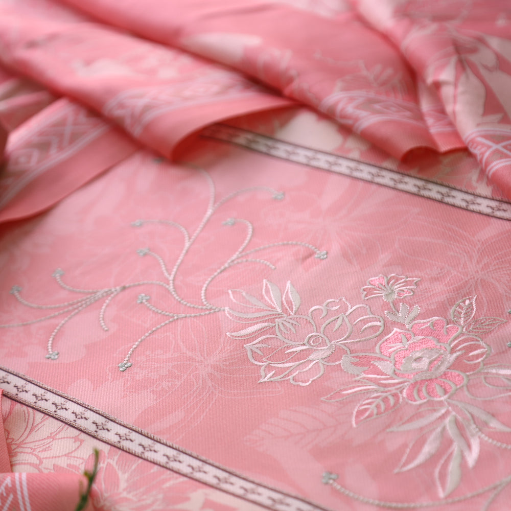 आयशा Bright Pink All Over Thread and Embroidered Hem Semi Pashmina Winter Set