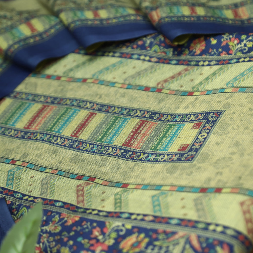 खुशबू Royal Blue Panel Style Floral Printed Semi Pashmina Winter Set
