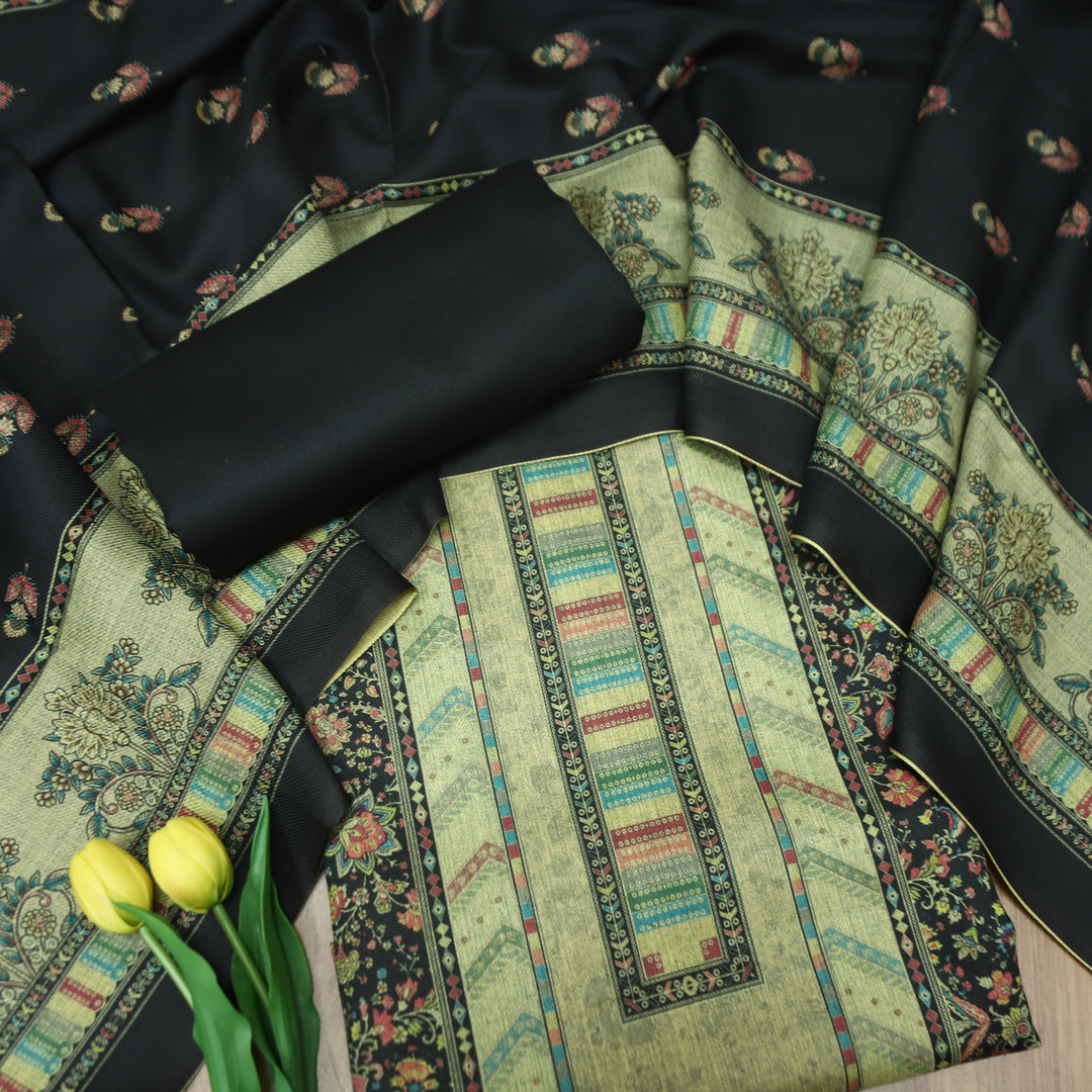 Kanya Shadow Black Digital Floral Printed Semi Pashmina Winter Suit Set