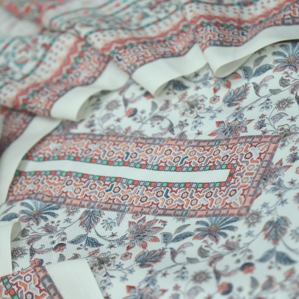 सुप्रिया Cream White Floral Kanni Printed Semi Pashmina Winter Suit Set D2