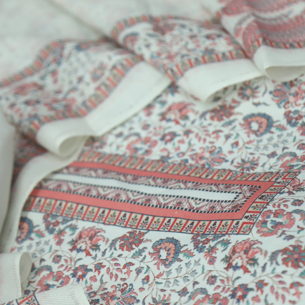 सुप्रिया Cream White Floral Kanni Printed Semi Pashmina Winter Suit Set D3
