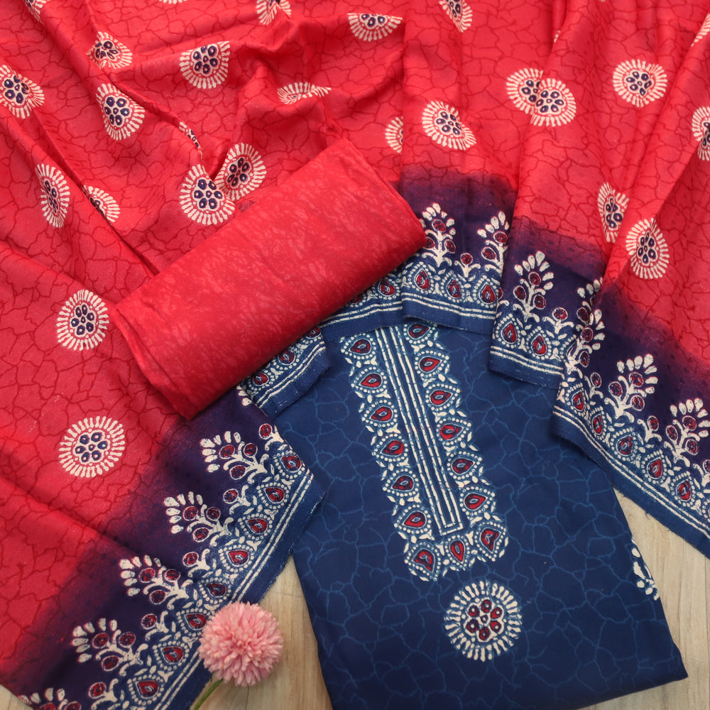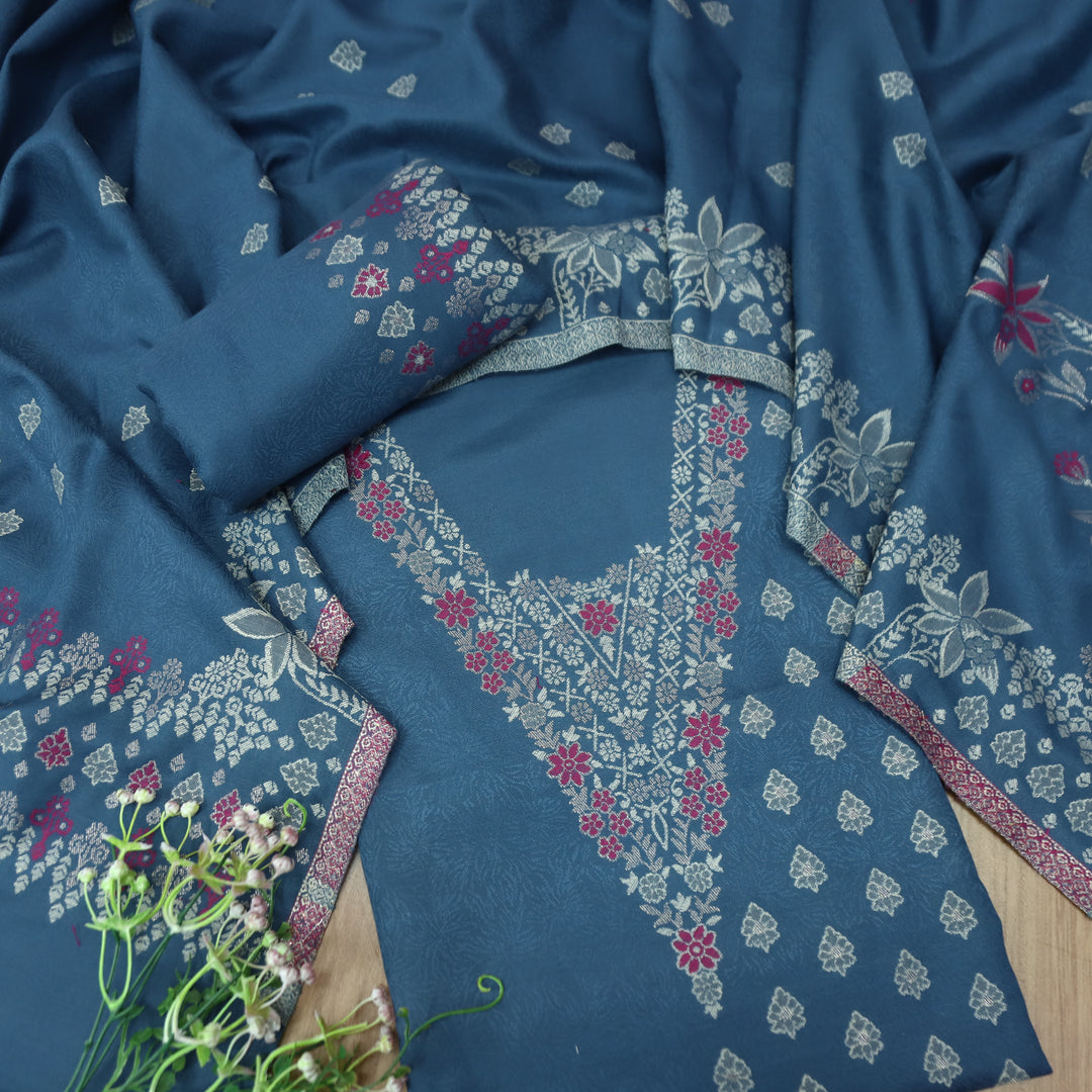 Farida Indigo Blue Digital Print Semi Pashmina Winter Suit Set