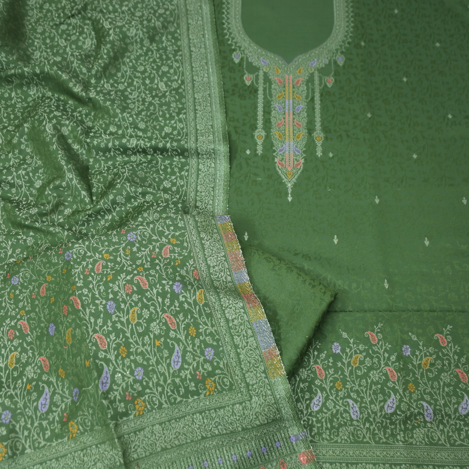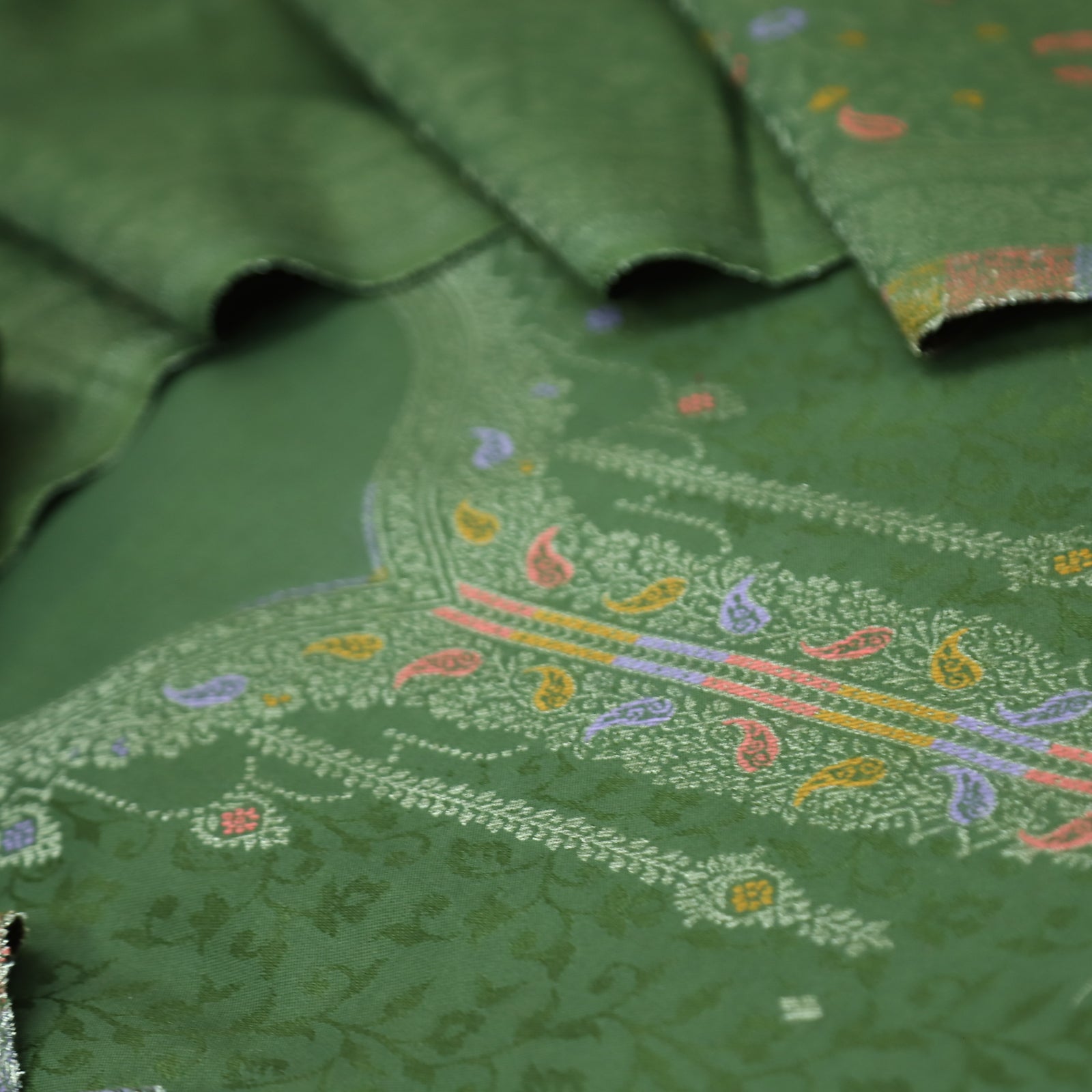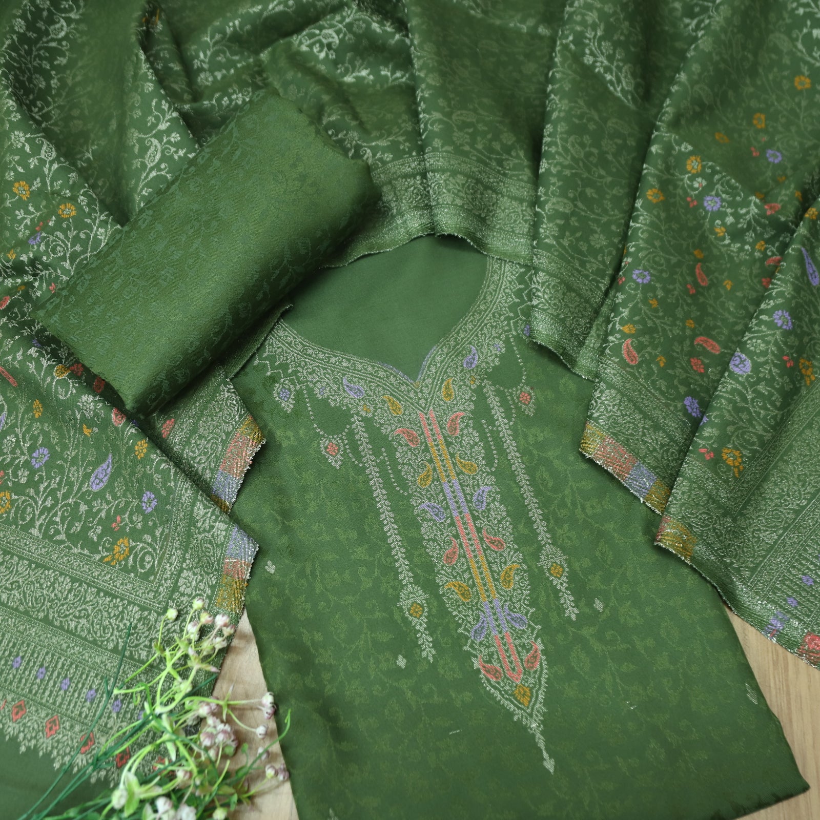 आरूही Forest Green All Over Zari Weaved in Semi Pashmina Winter Suit Set