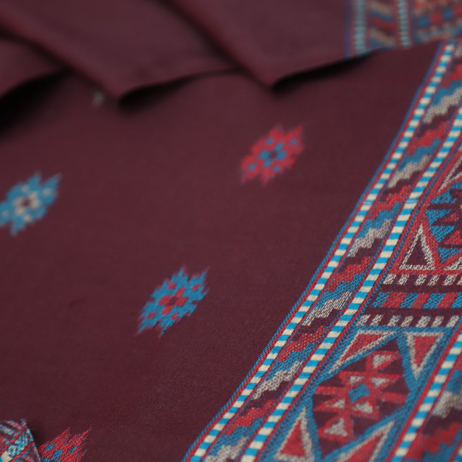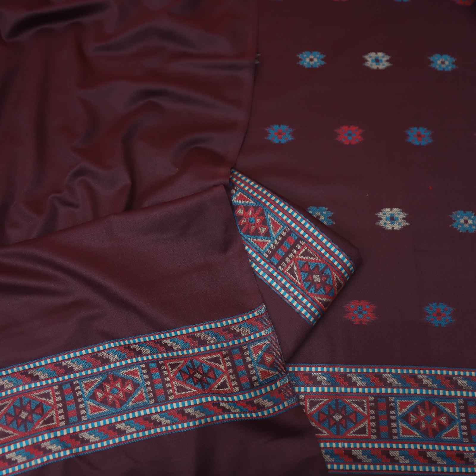 बेगमजान Burgundy Wine Enhanced with Thread Weaved Hem Semi Pashmina Winter Set